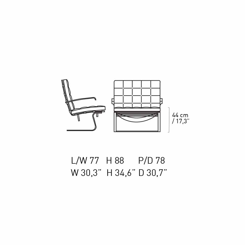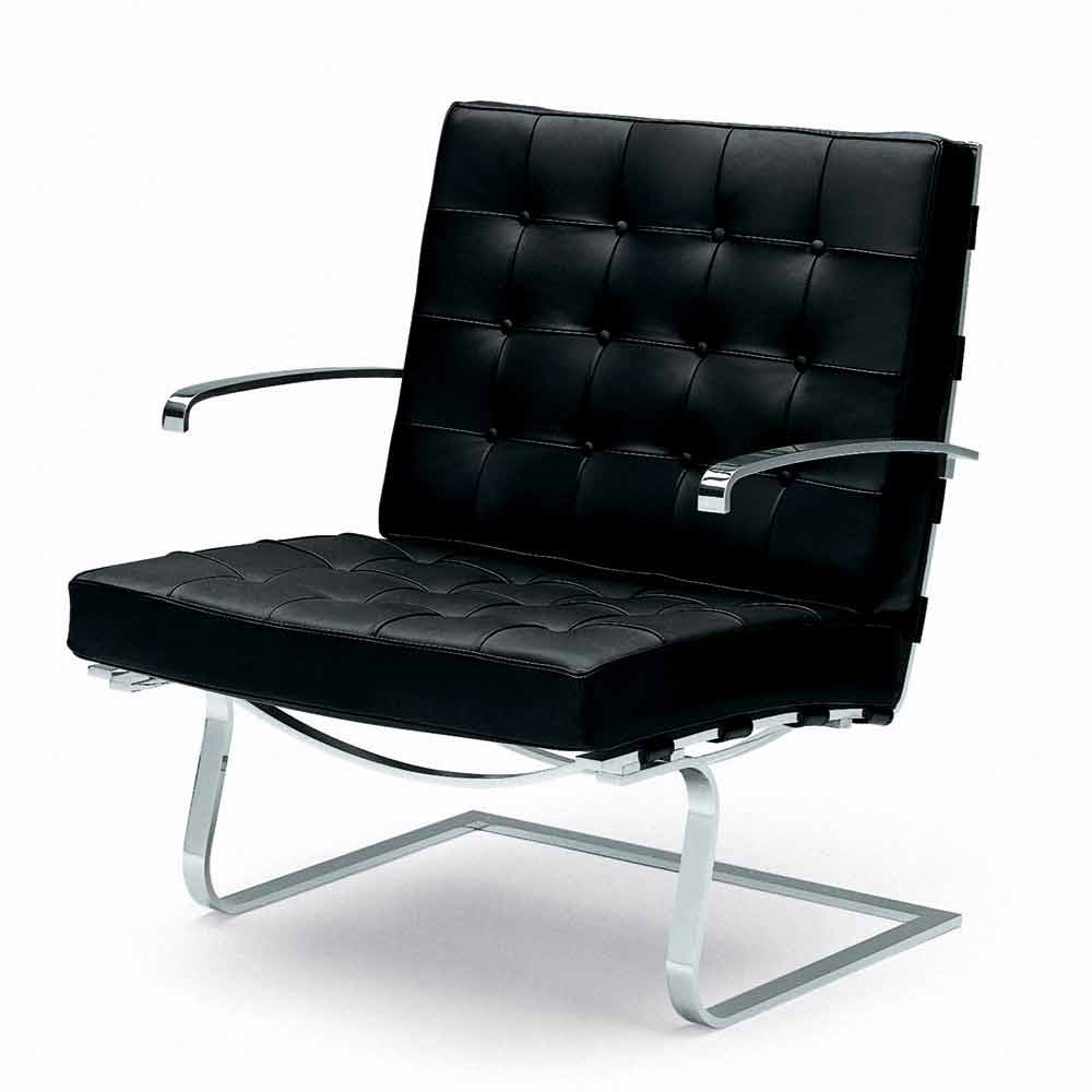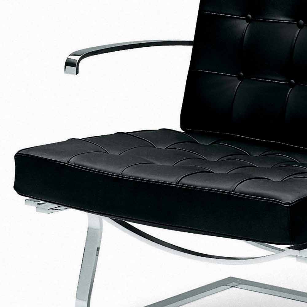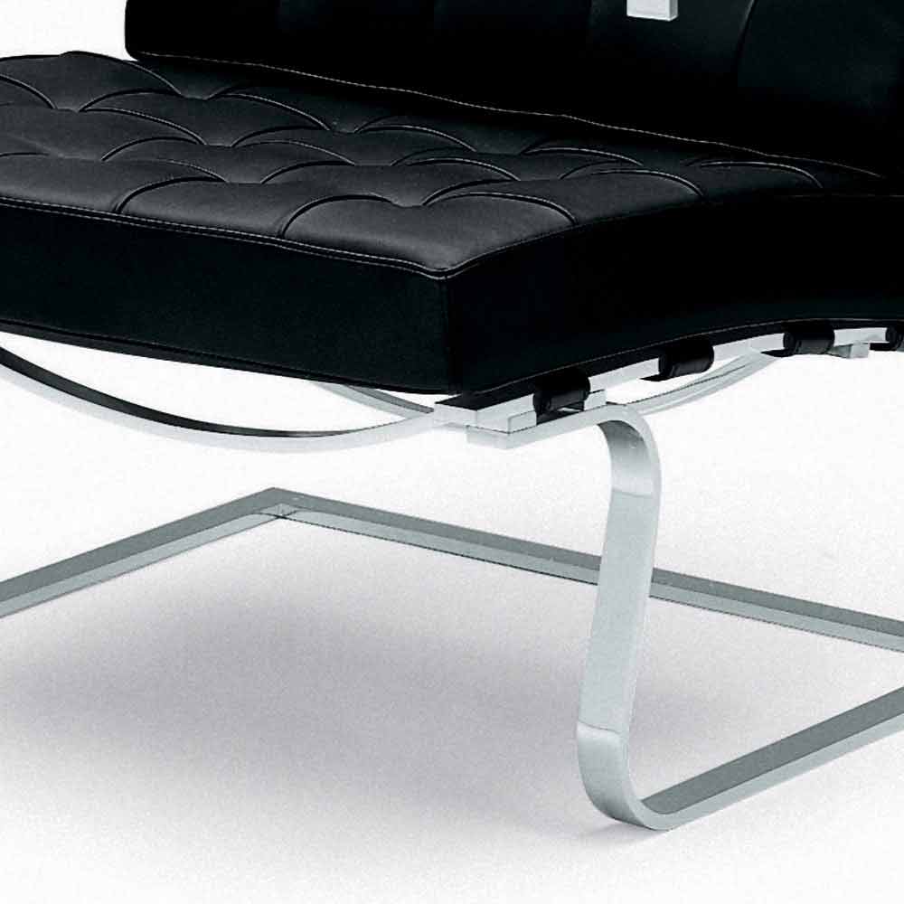 chromovaným ocelovým rámem , polštáři z polyuretanové pěny a podšívkou z polyesterových vláken, podpůrnými popruhy v kůži a vnější potahem z kůže, zcela