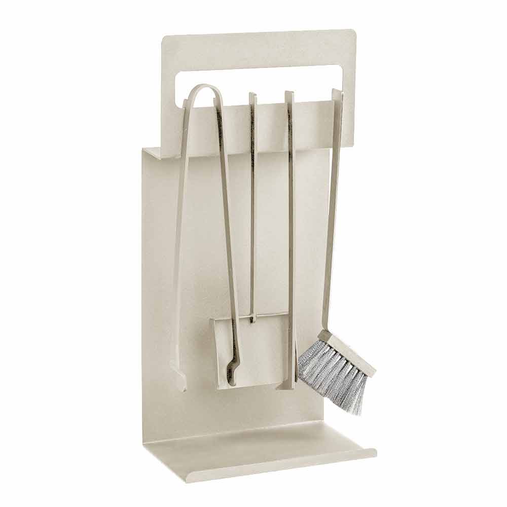 vyrobené v Itálii . Tento kus nábytku je nepostradatelné kombinovat s držákem kulatiny, protože je vybaven čtyřmi různými druhy nástrojů užitečných pro udržování ohně a čištění krbu: