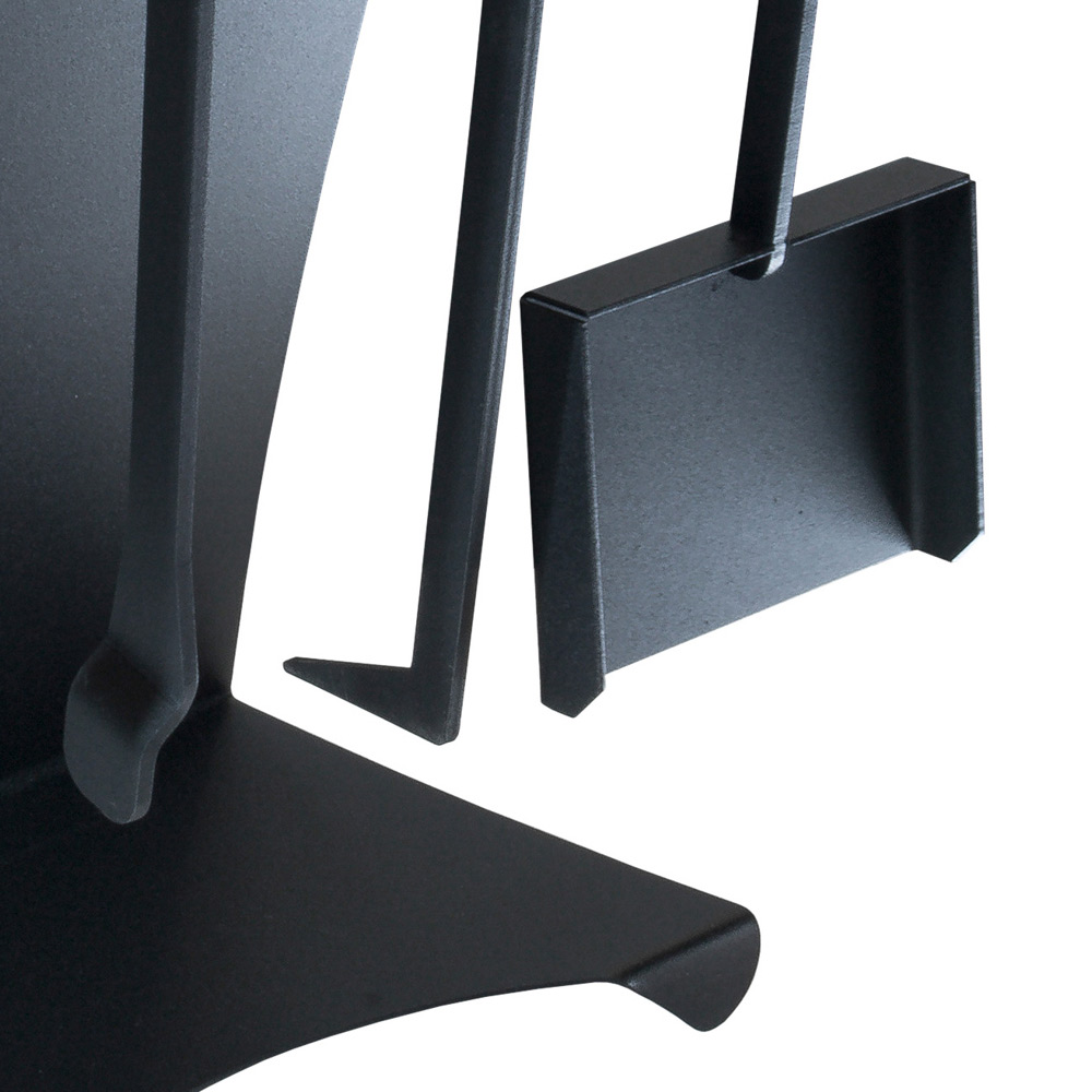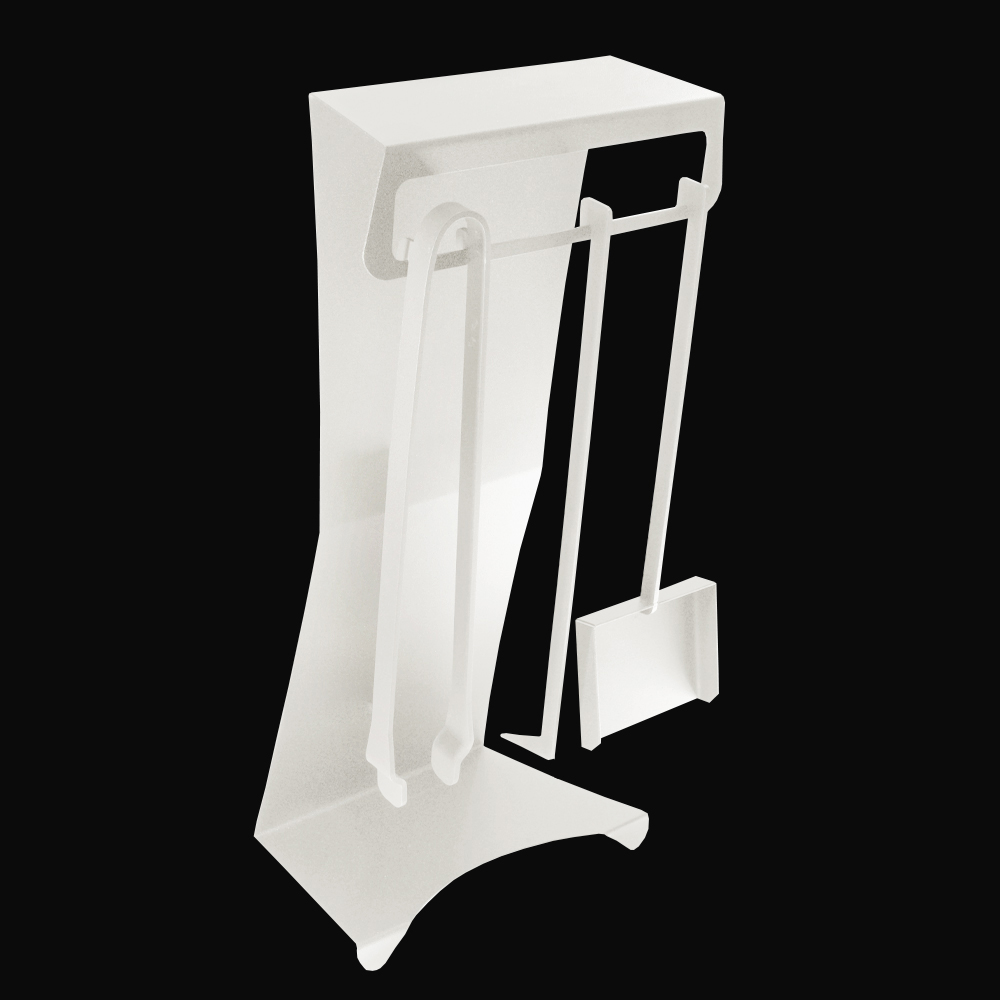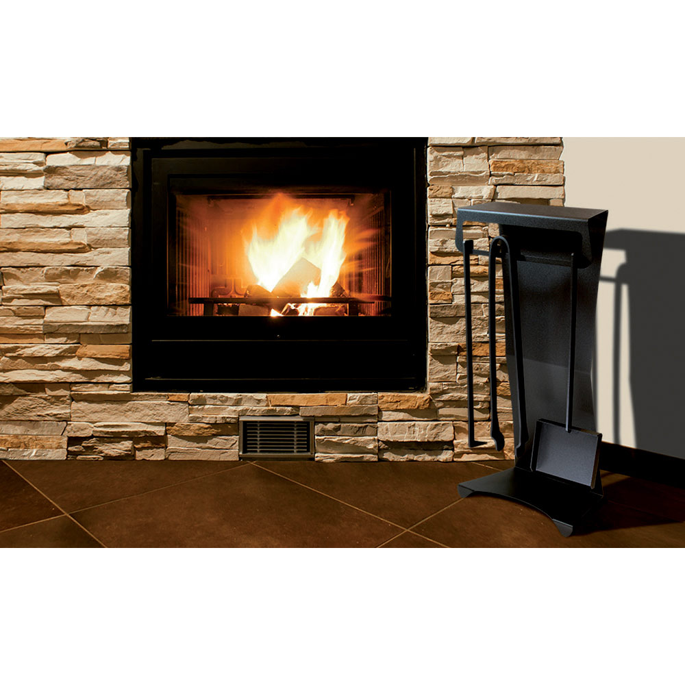 vyrobené v Itálii . Nepostradatelné řešení nábytku, které lze kombinovat s držákem kulatiny, protože je obzvláště funkční díky třem nástrojům užitečným pro udržování ohně a čištění krbu:
