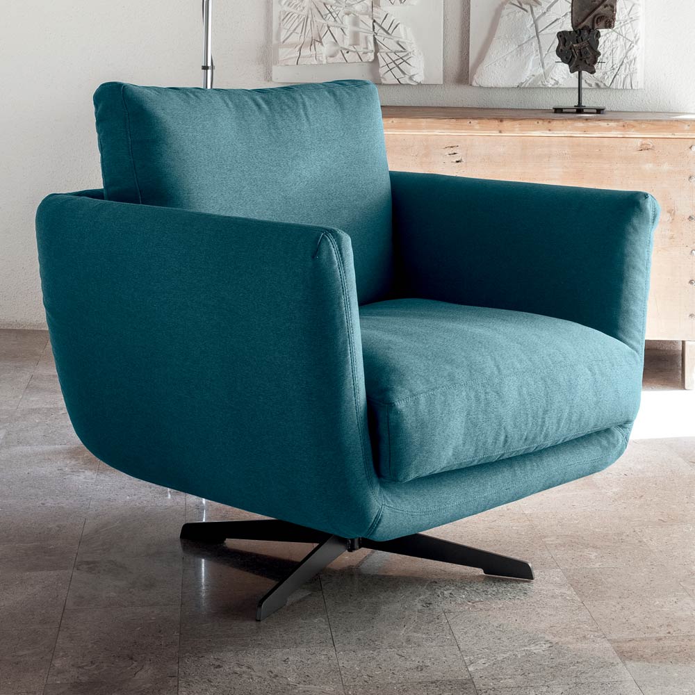 lakovaného kovu v antracitové barvě. Křeslo představuje harmonické spojení pohodlí a moderního stylu. Elegantní design s měkkými a zaoblenými liniemi navozuje pocit útulnosti, zatímco robustní konstrukce zajišťuje dlouhou životnost. Kvalitní látkové čalounění spolu s velkými a pohodlnými sedáky slibují relaxační zážitek ze sezení. Tenké a geometrické nohy dodávají sofistikovaný nádech, díky čemuž je křeslo fascinujícím designovým kouskem. Toto křeslo je ideální pro ty, kteří hledají řešení zařízení, které kombinuje moderní estetiku a dokonalý komfort.