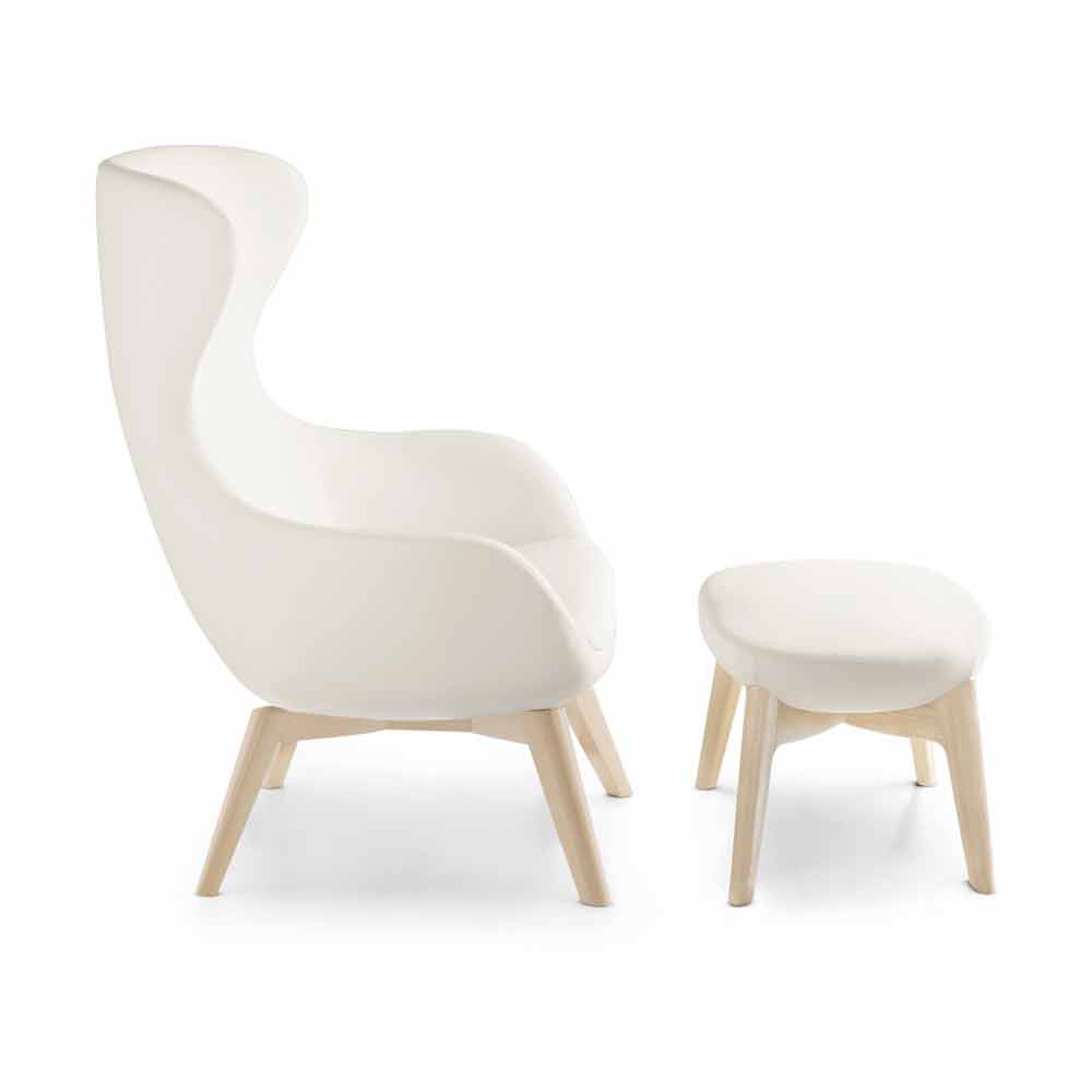 funkčnímu a rafinovanému výsledku, a to i díky přítomnosti pouf, která přispívá k dosažení pohodlí. bez rovnosti. Dřevěný podstavec doplňuje oba produkty