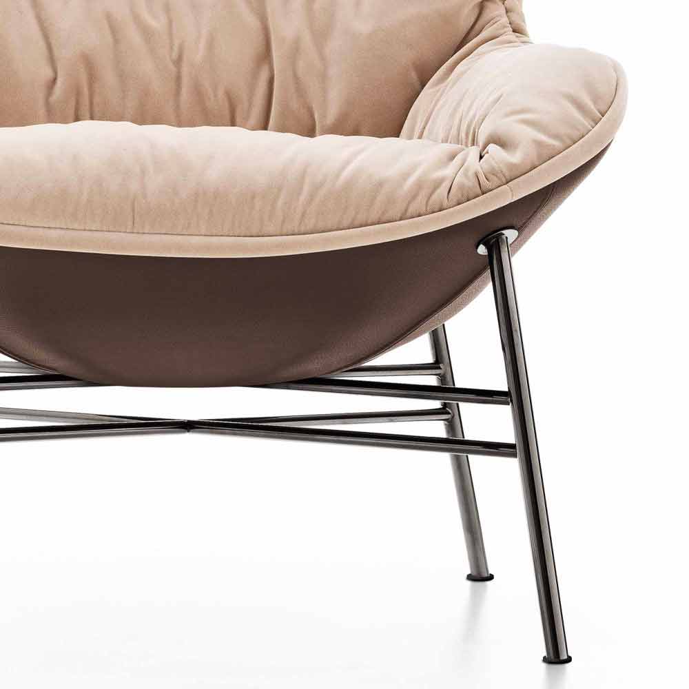 Toto křeslo, které se vyznačuje silným vizuálním dopadem, dokáže vyjádřit pevnost a odolnost a zároveň pohodlí a měkkost, což představuje ideální řešení pro ty, kteří hledají nápad, který může kombinovat