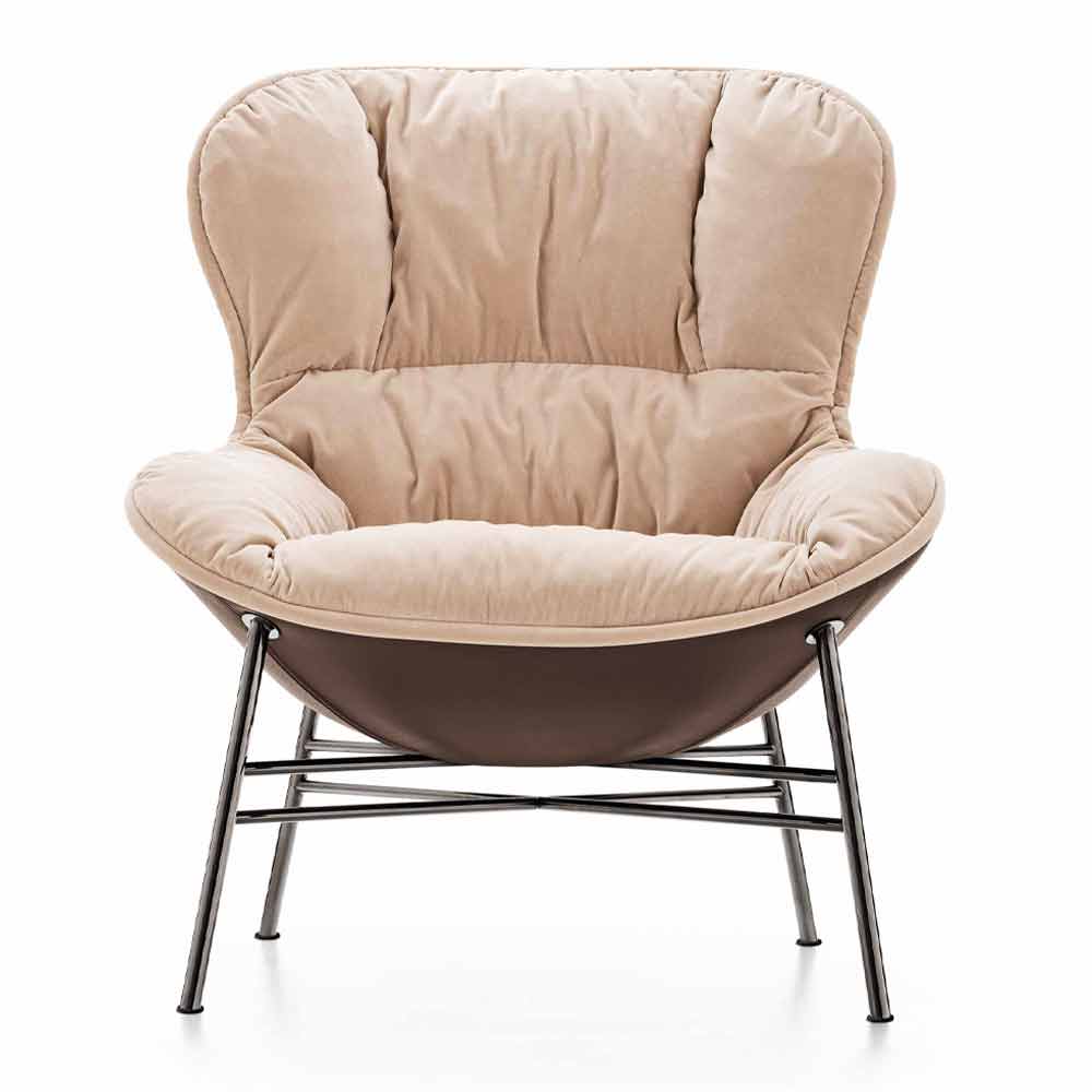 Čalouněné a čalouněné křeslo do obývacího pokoje s kovovým podstavcem, vysoce kvalitní Made in Italy.