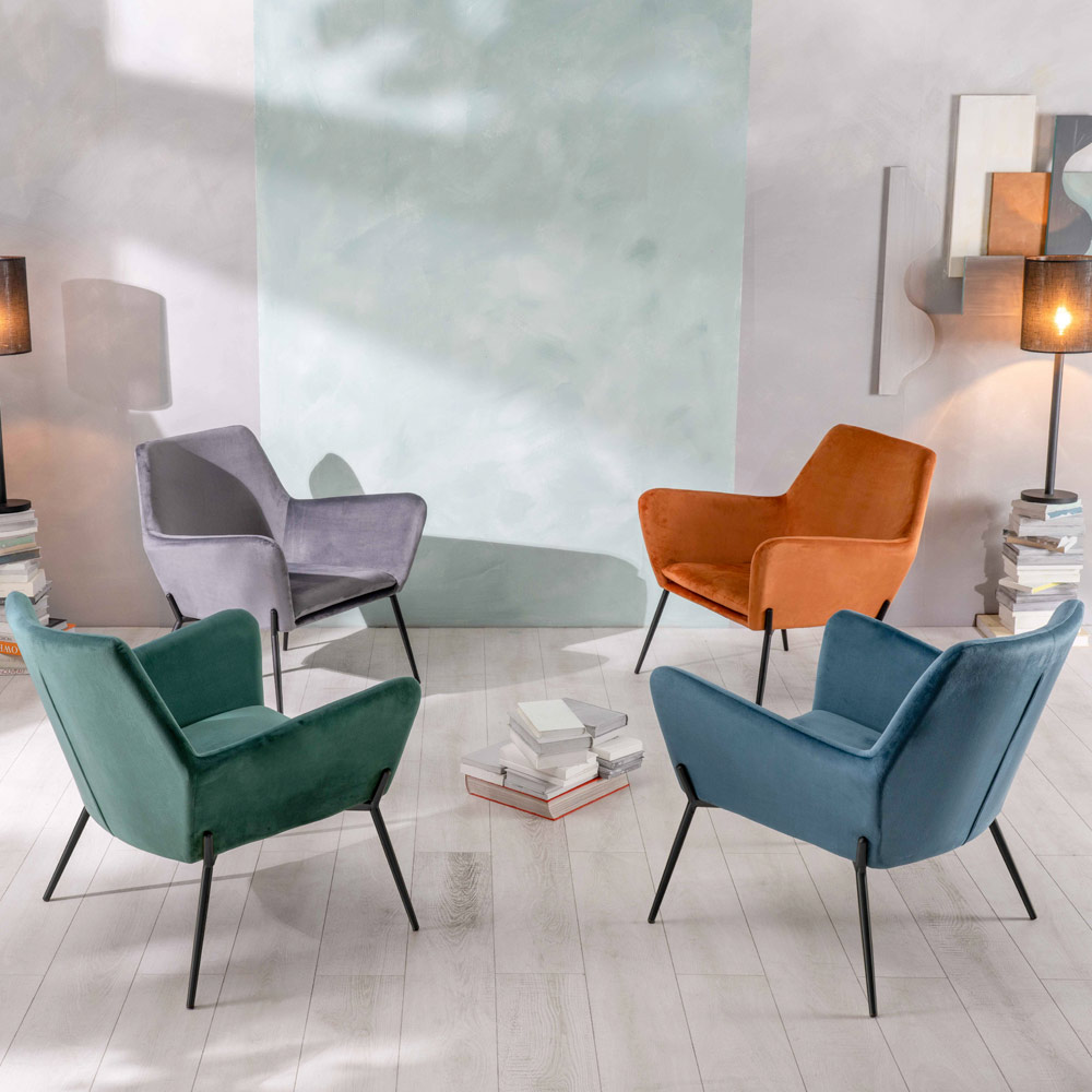 Toto křeslo je výrazem elegance a kultivovanosti a je navrženo tak, aby dodalo elegantní dotek obývacímu prostoru, ale hodí se k jakémukoli řešení zařízení. Jemný samet obepíná sedák a je tak mimořádně příjemný na dotek. Konstrukce je zakončena nohami se štíhlým designem v elegantním kovu. Je to bytový doplněk, který dokáže dodat jedinečnost prostoru a stane se ústředním bodem každého moderního a současného obývacího pokoje.