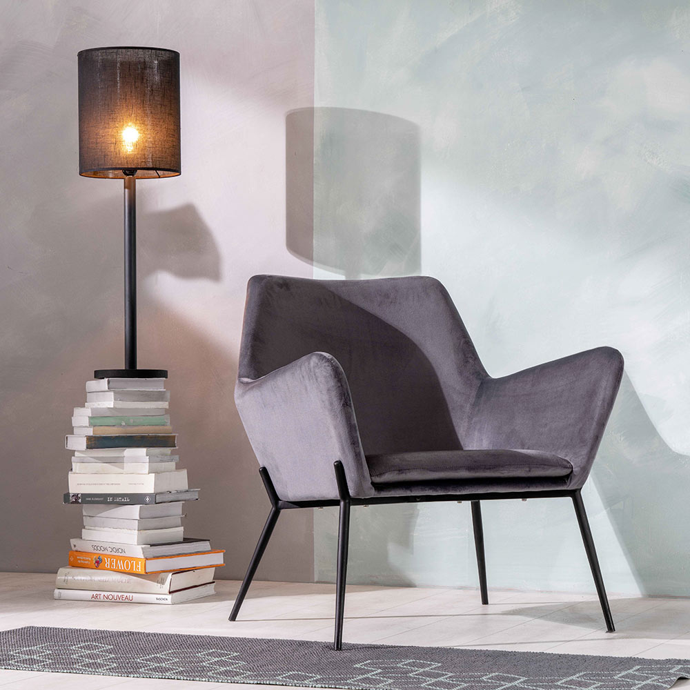 Křeslo do obývacího pokoje ze sametu a kovu