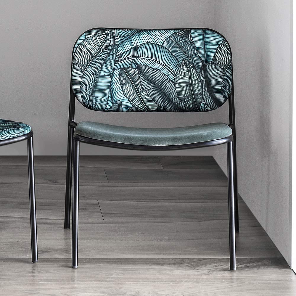 lakovaného kovu a čalouněným sedákem a opěradlem čalouněným