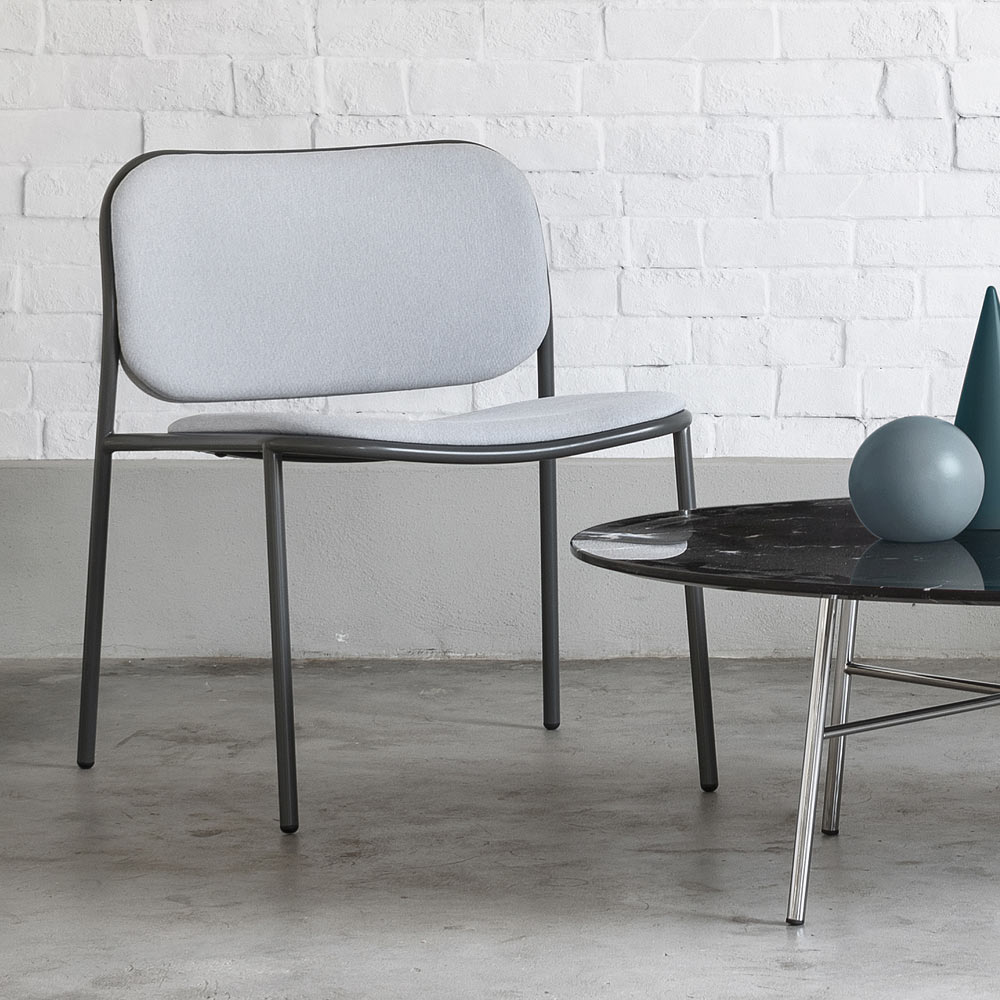 osobnosti a materialitě křesla. Možnost stohování také zdůrazňuje jeho funkční stránku a dělá z něj perfektní řešení i pro smluvní prostředí, jako jsou bary, restaurace a salonky v hotelech, kde je nezbytné mít možnost optimalizovat prostory, když se křesla nepoužívají.