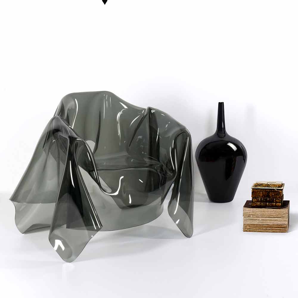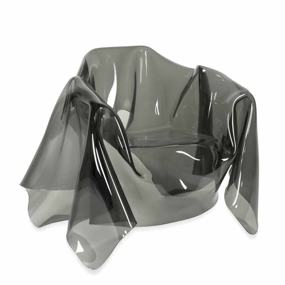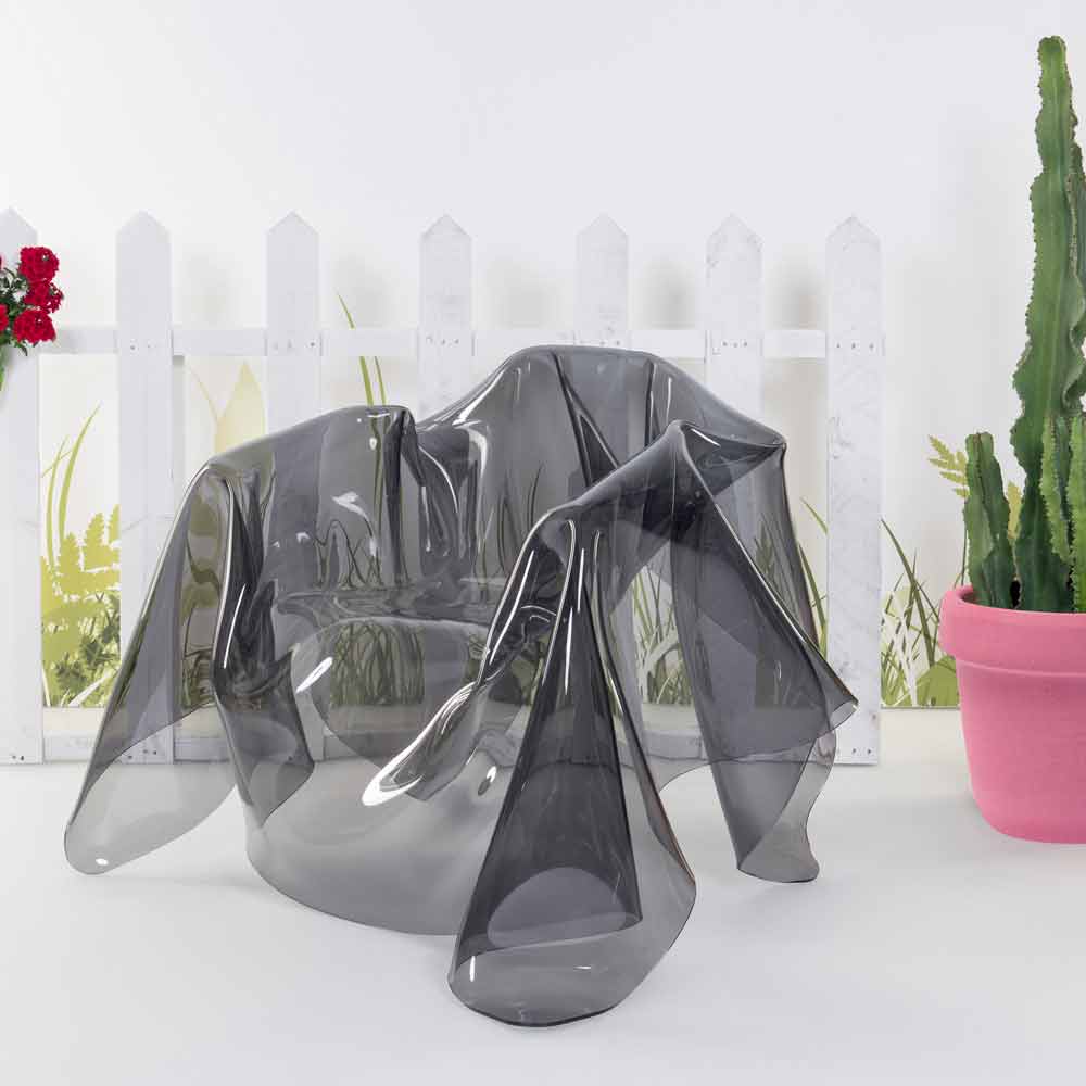 Pařížská přehodil židle je unikátním kouskem, dílo moderního umění. Z vrstvy čistého dosud nepoužitý polymer, 100% PMMA plexiskla z kouřového zbarvení přehozené zcela ručně, se narodil jedinečný a neopakovatelný židle. Židle je zcela samonosná a je vhodný pro 1 osobu. Fyzikální a technické vlastnosti plexiskla (šoku, stres-odolné, trvanlivé, tepelně izolační), aby tento výrobek doplňkem praktické a funkční nábytek, vhodný pro jakékoliv prostředí. Jas a jas zůstávají konstantní a beze změny v průběhu času. Z plexiskla PMMA z panenského polymeru používá netoxické, hypoalergenní, bez zápachu a antibakteriální. Recyklovatelné 100%. Počala navržený a vyrobený v Itálii, s italskými materiály.