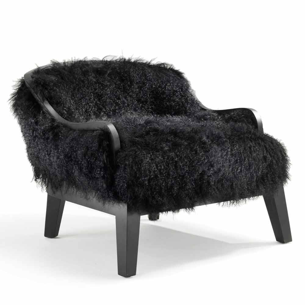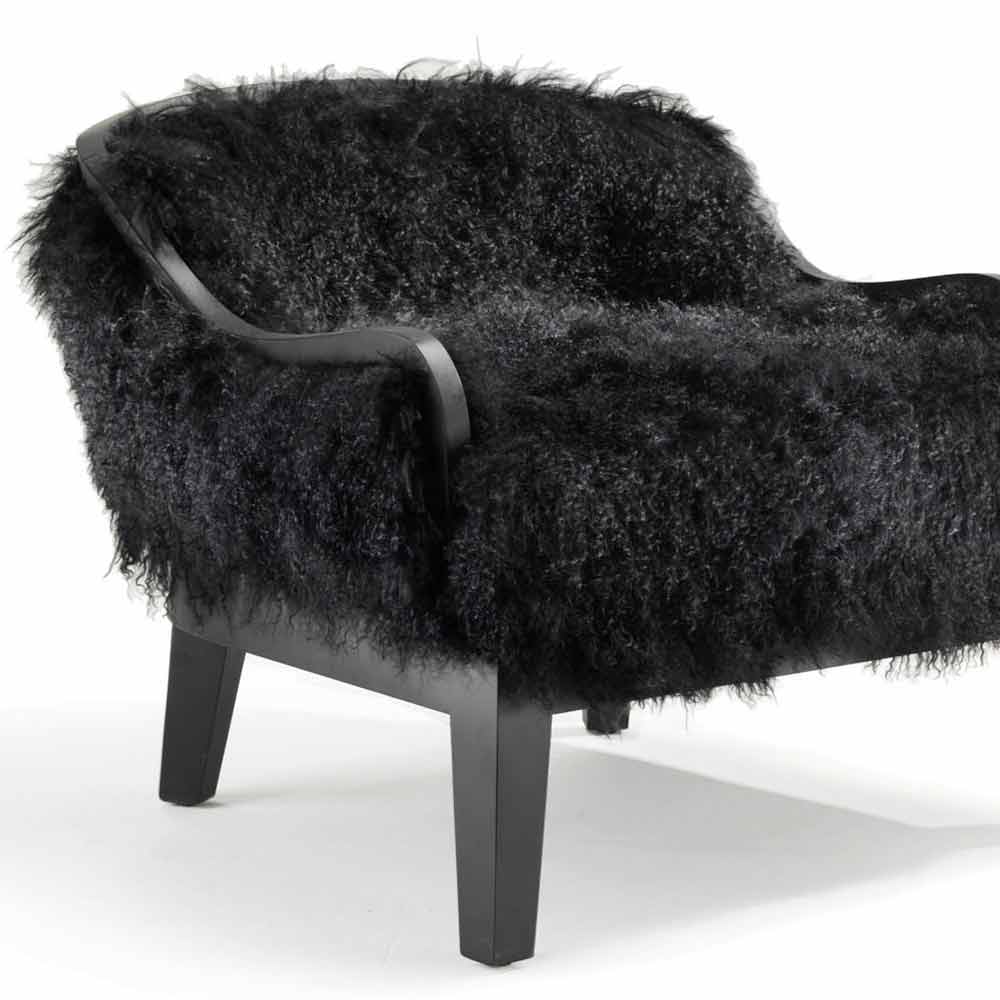 Křeslo nízkou posezení v černé kůže a kožešiny, vyrobený v Itálii, Eli