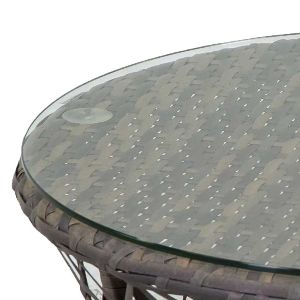 Související kavárenský stolek je vybaven skleněnou deskou, která je ideální pro uchovávání nápojů, knih nebo dekorací na dosah. Díky svému kulatému tvaru a kompaktním rozměrům je univerzální a snadno jej umístíte vedle křesla nebo do jakéhokoli rohu zahrady či terasy.