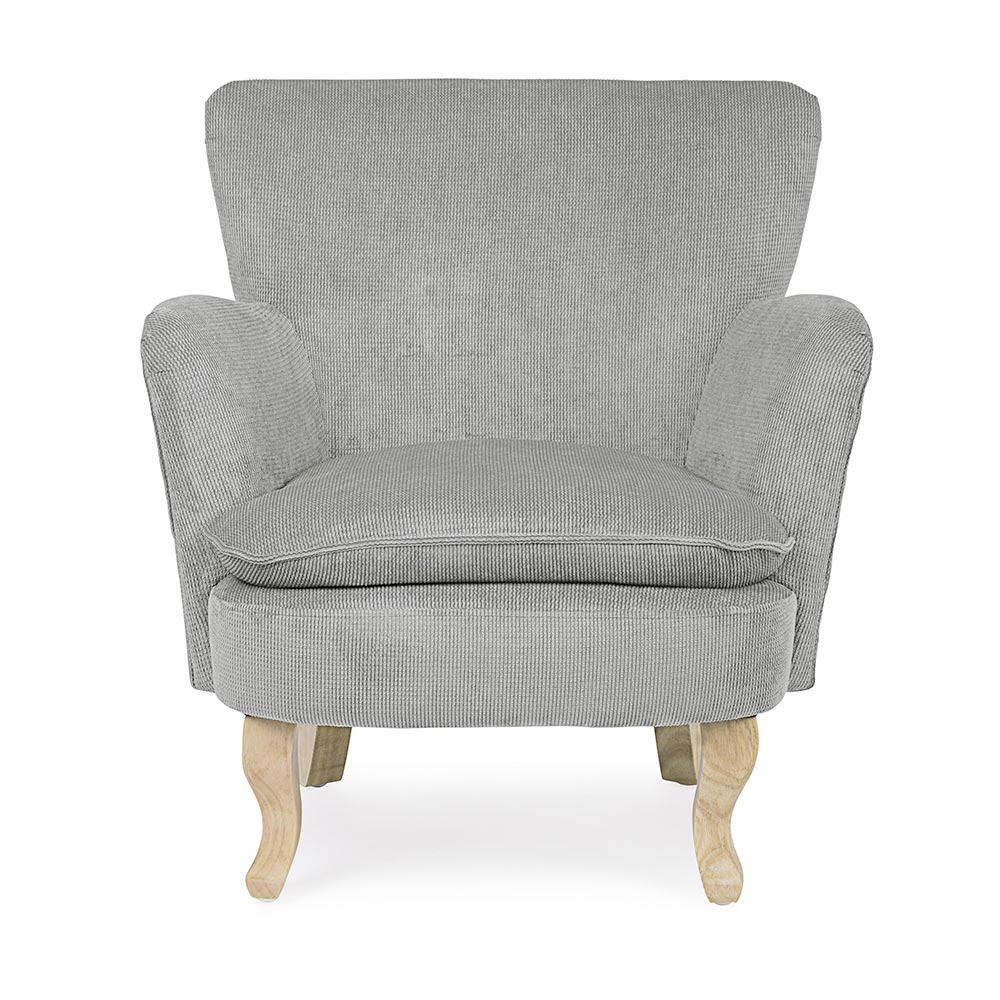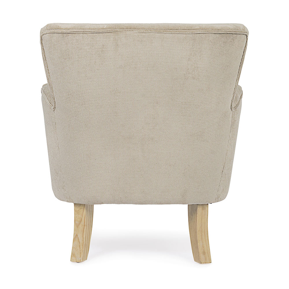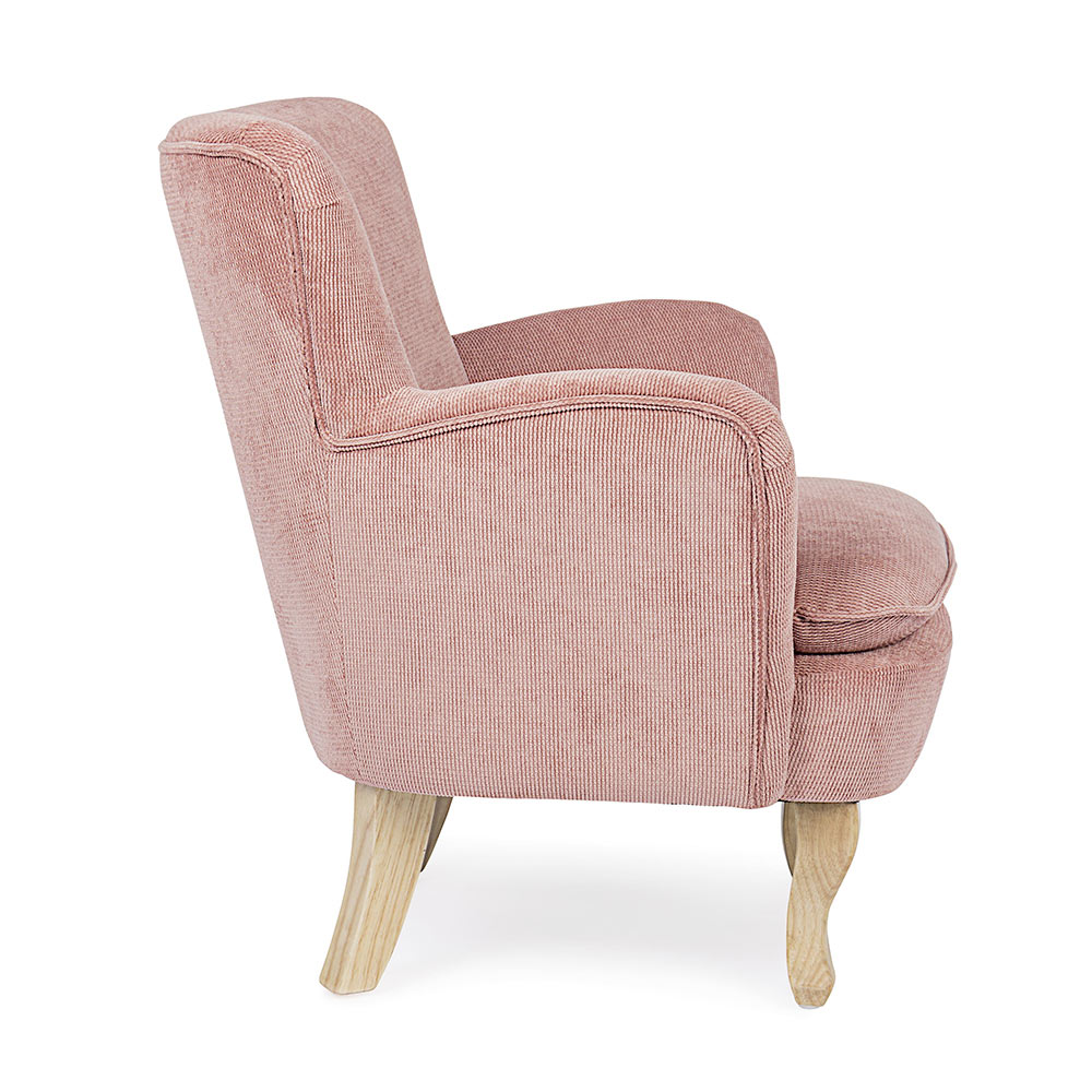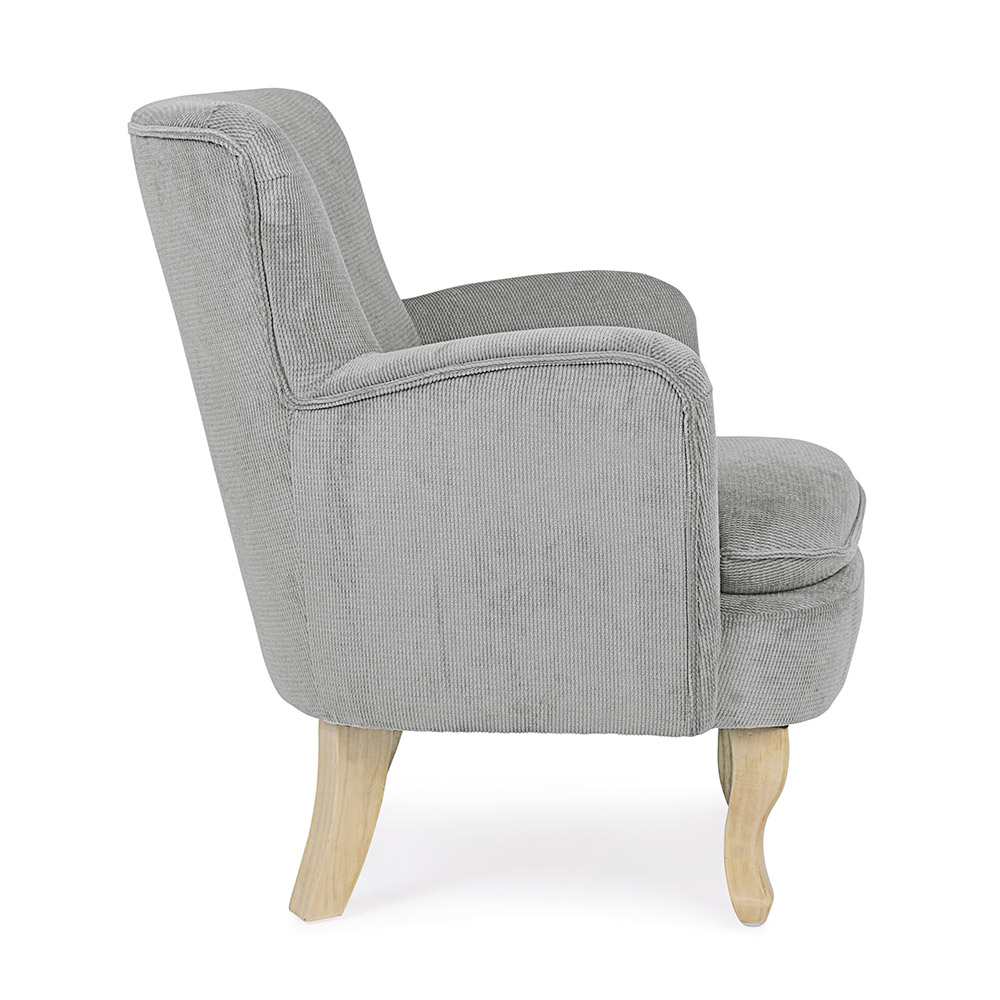 Křeslo z borovicového a kaučukového dřeva a čalouněný sedák s manšestrovým efektem ve 4 povrchových úpravách.