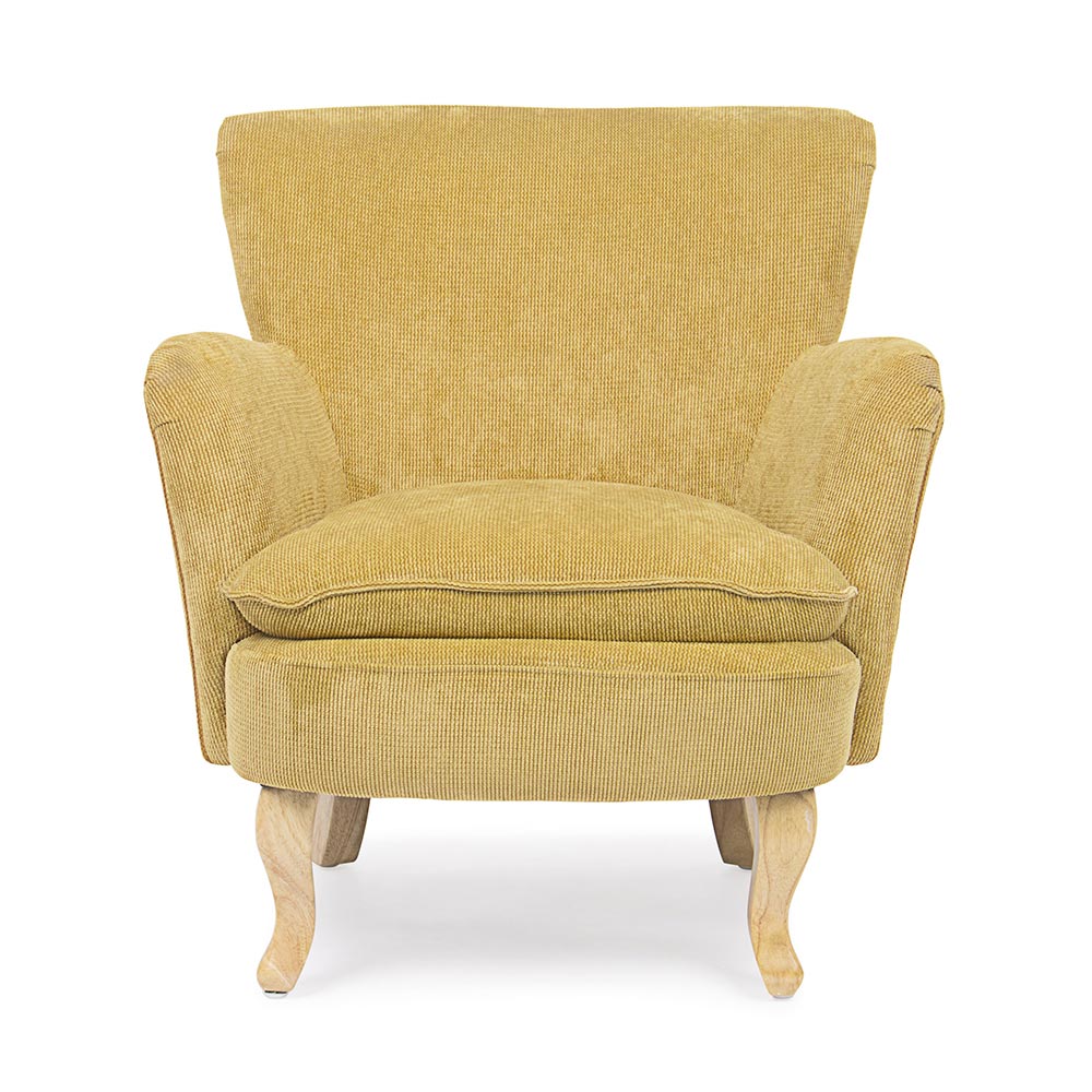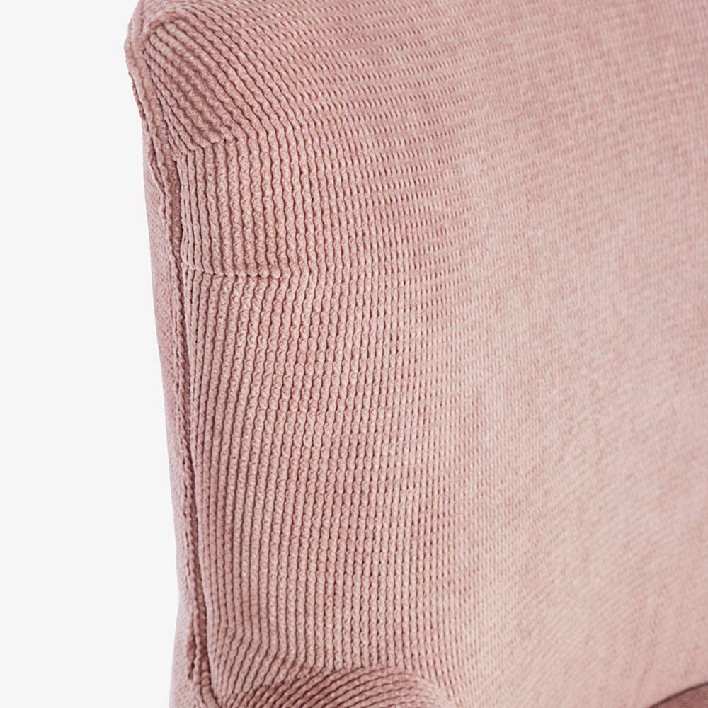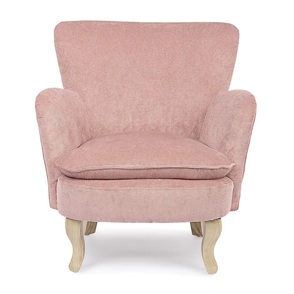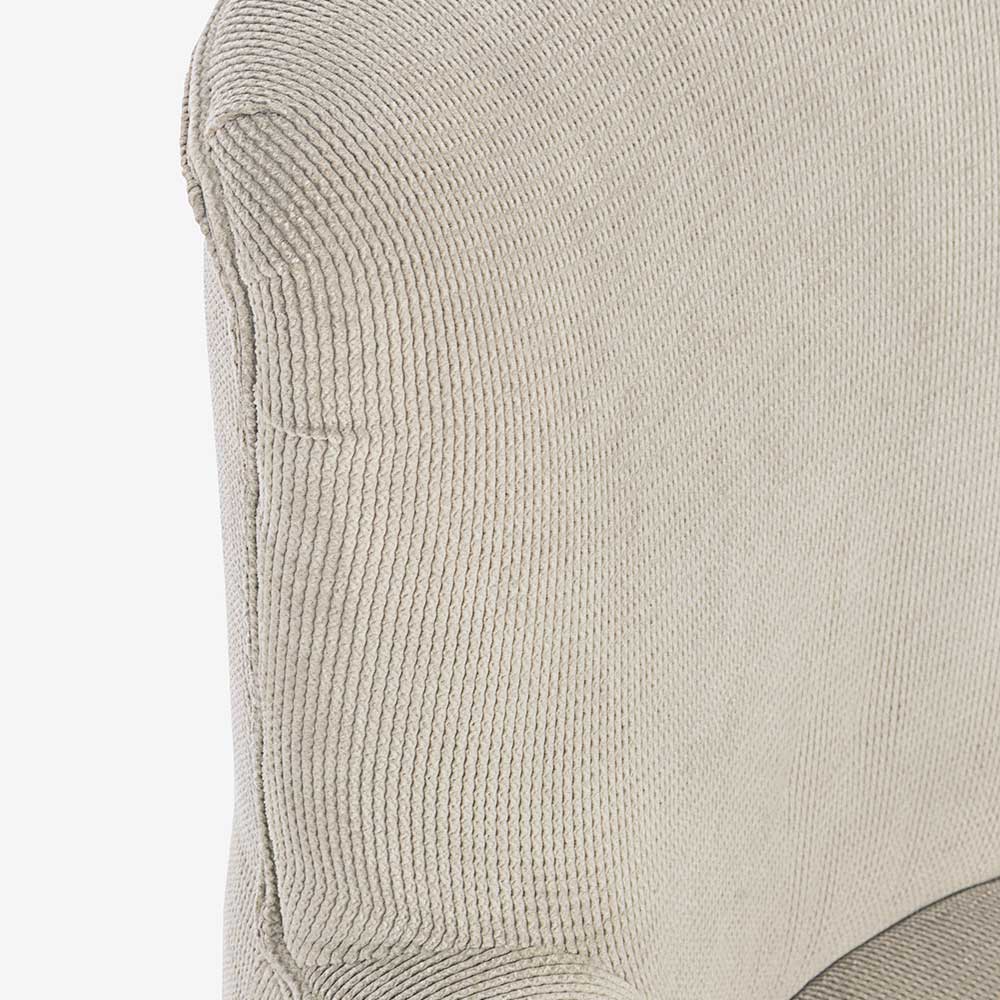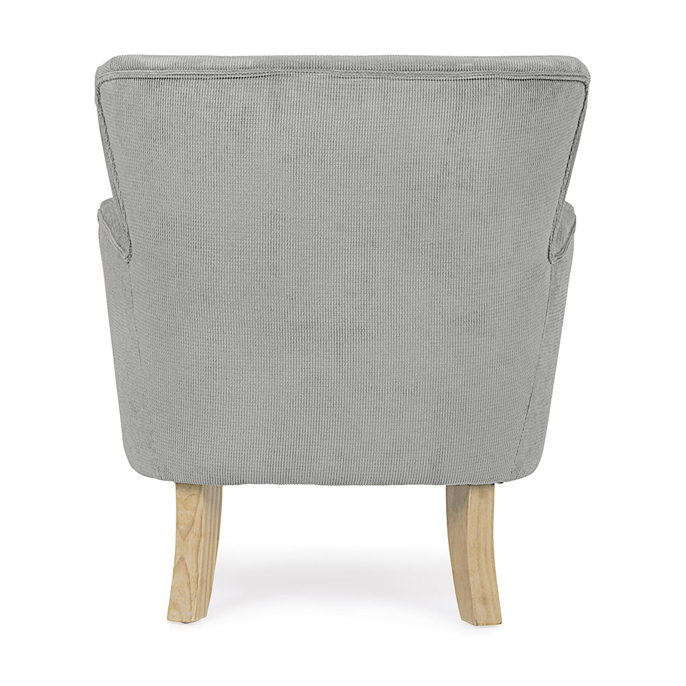 Křeslo z borovicového a kaučukového dřeva a čalouněný sedák s manšestrovým efektem ve 4 povrchových úpravách.
