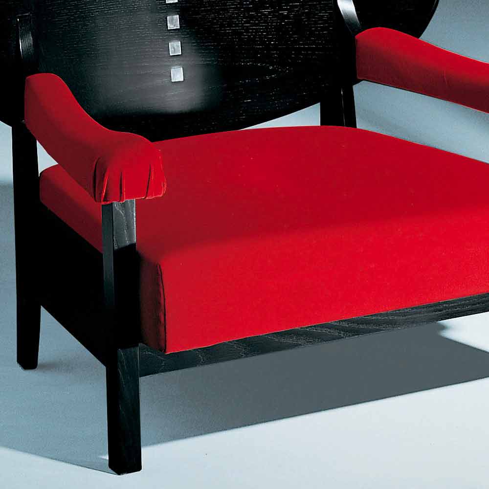 Látkové křeslo s černě mořenou strukturou jasanu Vyrobeno v Itálii.