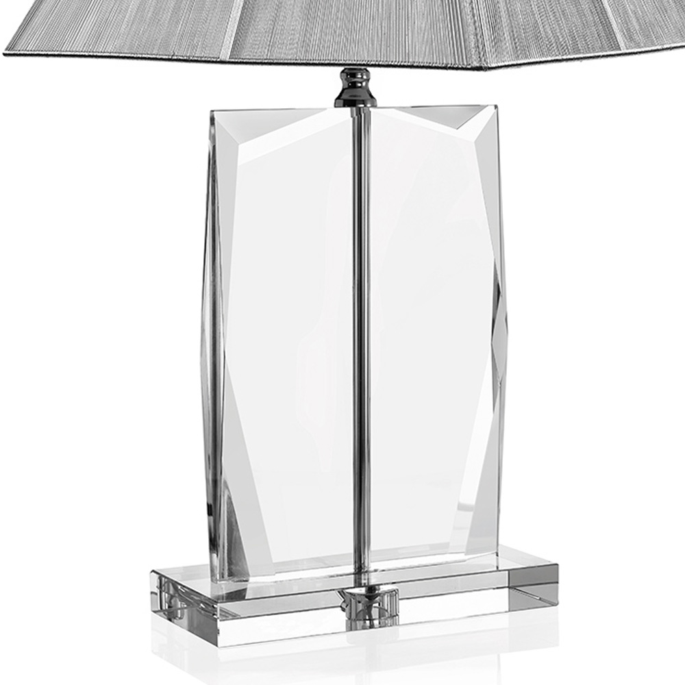 Křišťálová stolní lampa se čtvercovým stříbrným stínidlem ve 2 velikostech.