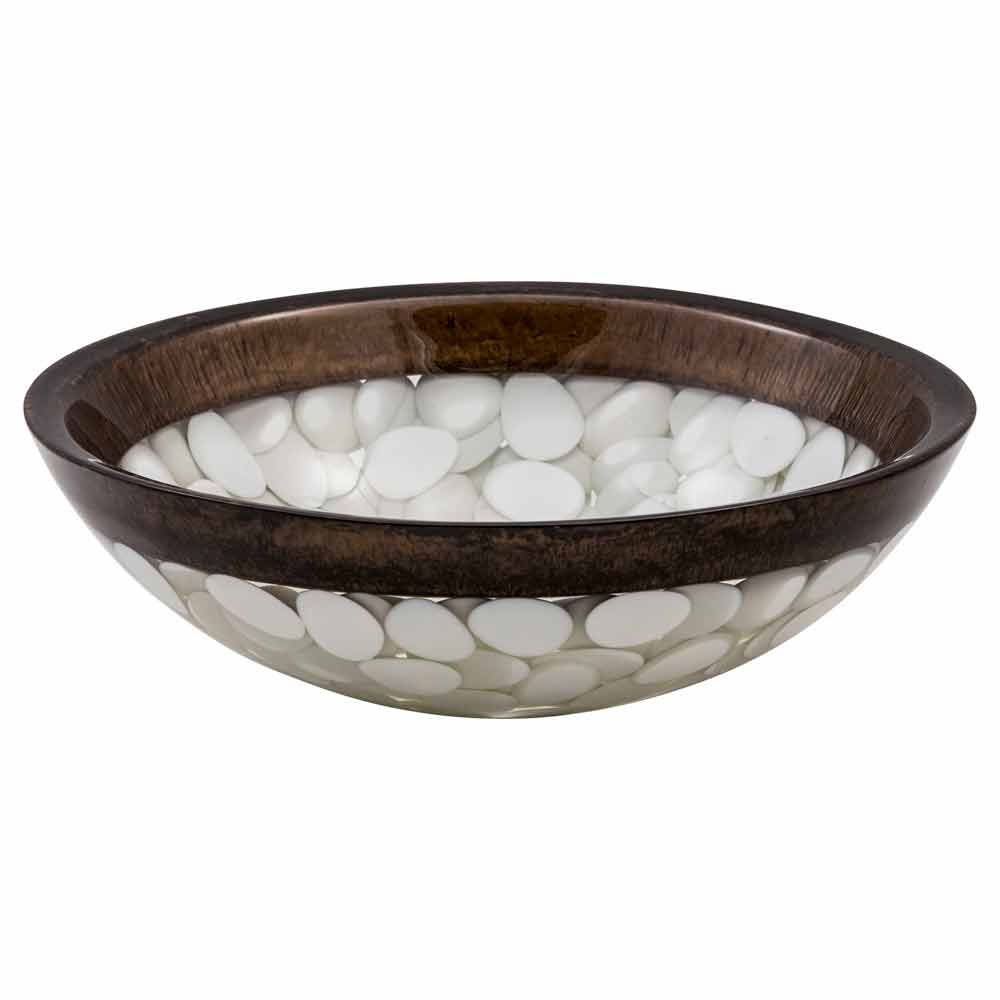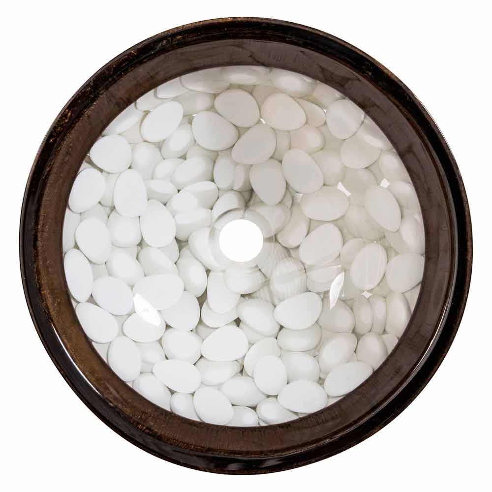 Buguggiate je báječný kulatý dřez na desku vyrobený ručně z vysoce kvalitní umělé pryskyřice, uvnitř které jsou připevněny kameny.