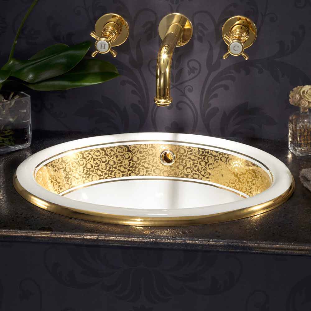 Kruhové zdobené umyvadlo v ohniště a zlato, Otis