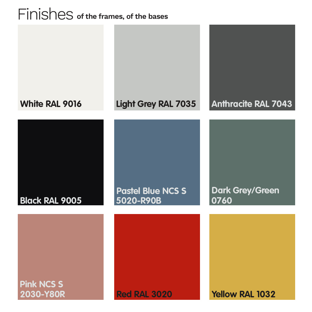 Poznámka : konstrukce a sedák jsou k dispozici v široké škále různých barev a povrchových úprav. Taburet je dostupný také s výškou 91 cm.