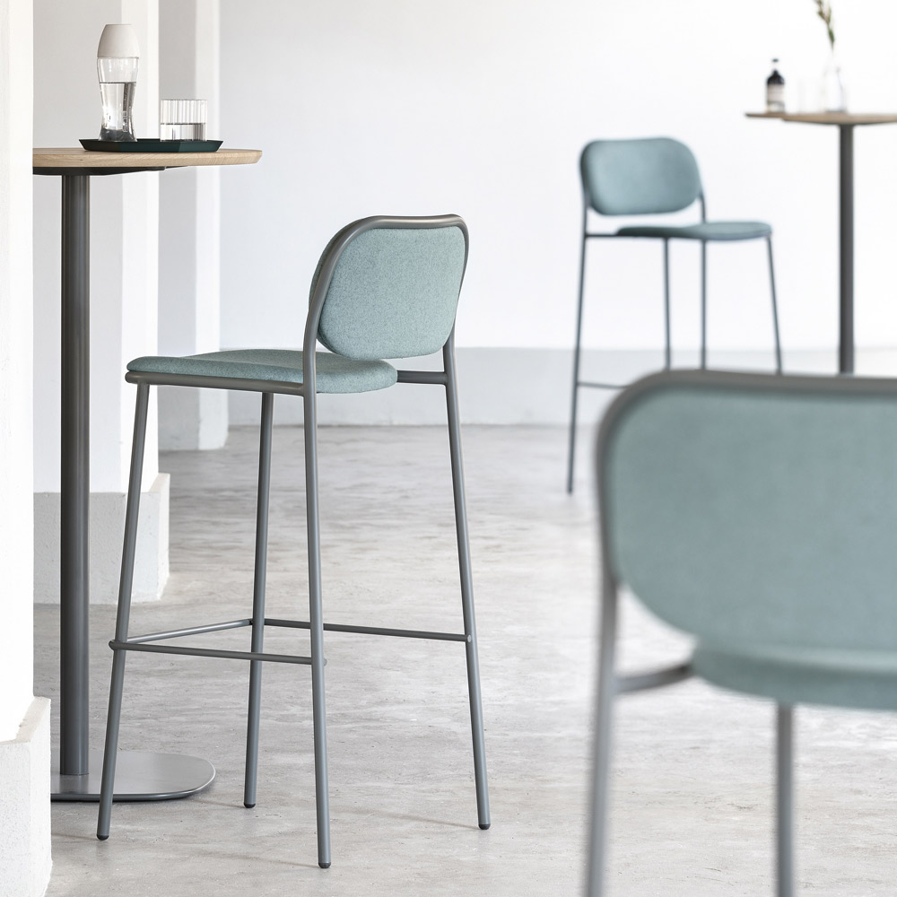 osobnosti a materialitě židle. . . Možnost stohování podtrhuje také jeho funkční stránku a dělá z něj perfektní řešení i pro smluvní prostředí, jako jsou bary a restaurace, kde je nezbytně nutné mít možnost optimalizovat prostory v době, kdy se taburety nepoužívají.