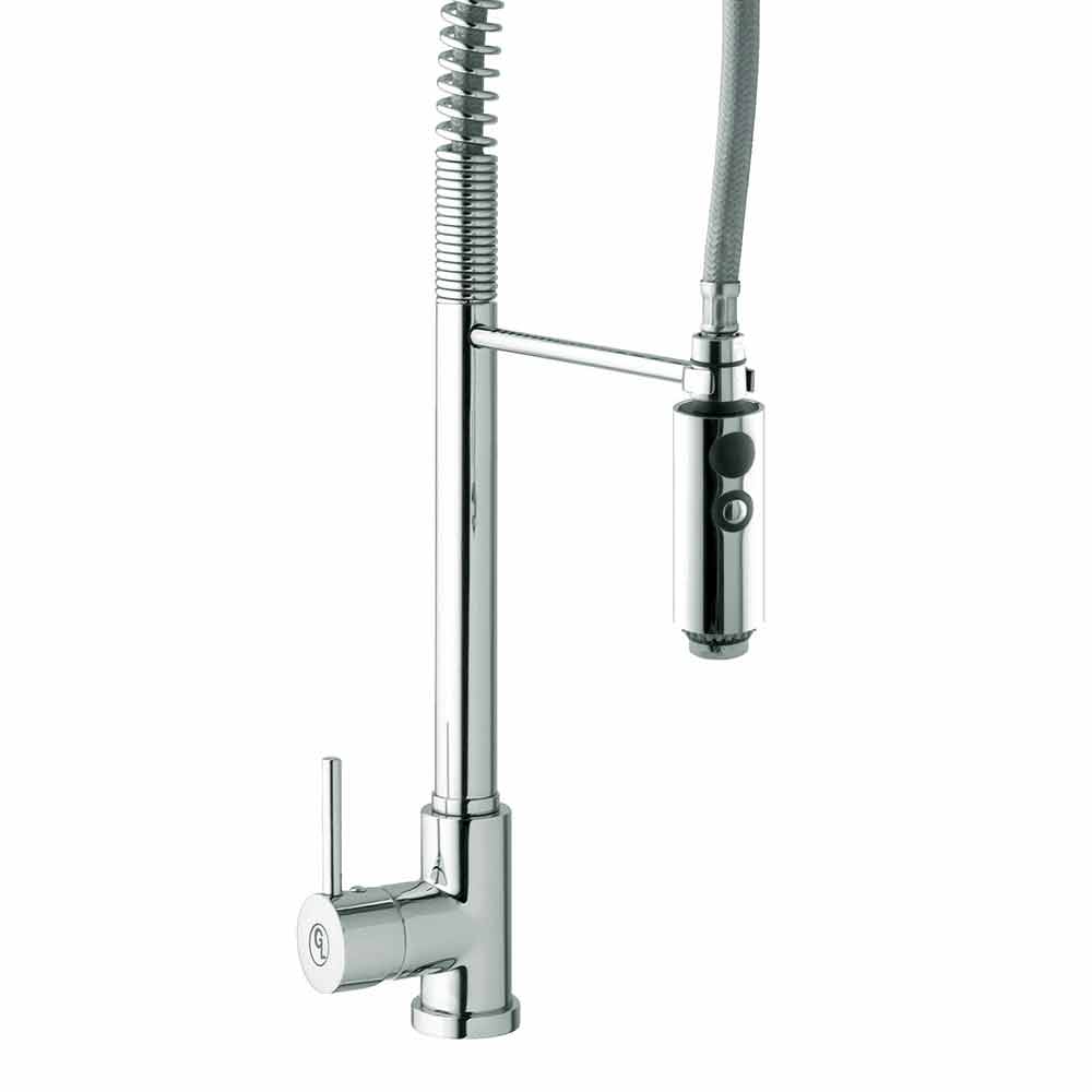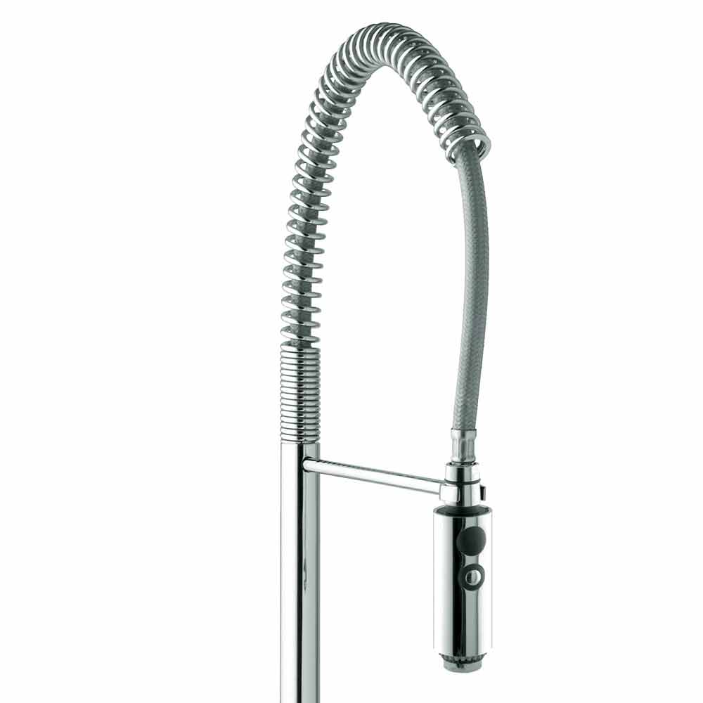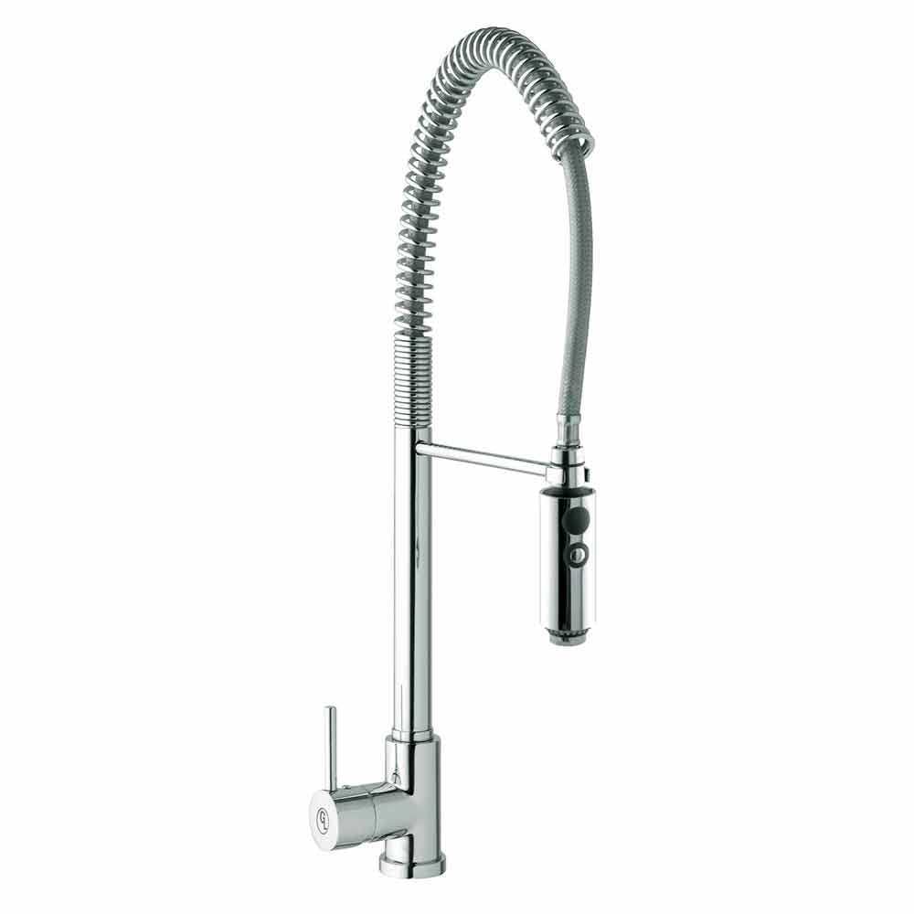 Made in Italy kuchyňského dřezu mixéru z pochromované mosazi. Funkčnost a design se spojily v tomto úžasném článku s moderním vkusem navrženým pro jednoduché a praktické použití díky přítomnosti nastavitelného výtoku s pružinou a 2-proudové sprchy. Díky tomu je jedinečná přítomnost zásobníku definovaného ES schopného dodávat studenou vodu, když je páka zvednutá ve střední poloze, čímž se vyhne potřebě horké vody z kotle, a tím umožní podstatné úspory energie.