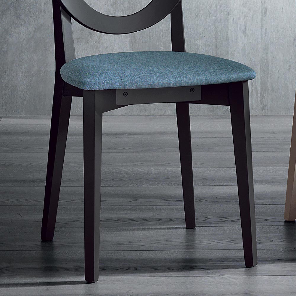 Moderní kuchyňská židle ze dřeva různých povrchových úprav a látek, vyrobená v Itálii.