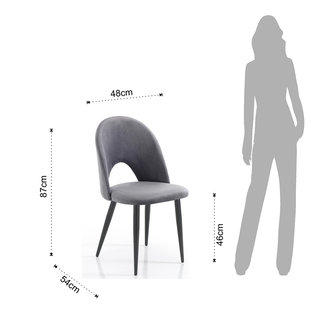 Kuchyňská židle z látky se sametovým efektem a lakovaného kovu, 4 kusy.