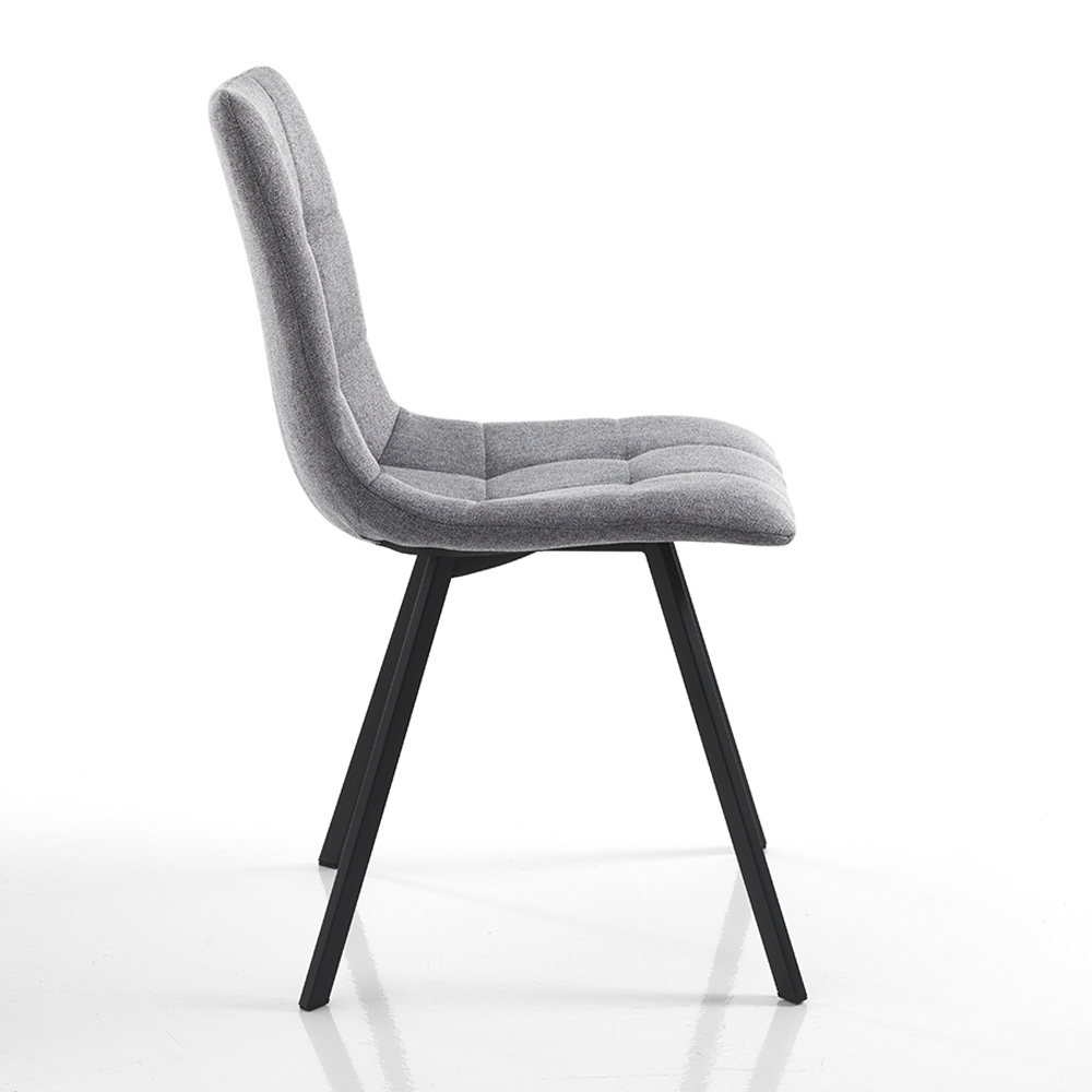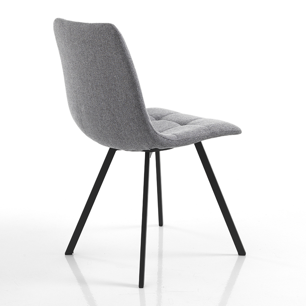 Kuchyňská židle s konstrukcí z matně černé lakované oceli a sedákem celý potaženým šedou látkou . Ideální pro umístění do jídelny a kuchyně, ale také do uzavřených prostor, jako jsou bary a restaurace, díky elegantnímu a rafinovanému designu a všestrannosti použití. Tvary, které charakterizují postavu, spolu s měkkým polstrováním nabízejí obzvláště příjemné a pohodlné sezení, které zajistí nádherné chvíle věnované relaxaci.