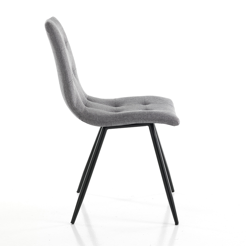 Kuchyňská nebo jídelní židle s nohami vyrobenými z matně černého lakovaného kovu a polstrovaným sedákem potaženým šedou látkou . Dokonale se kombinuje se všemi styly moderního nábytku, od těch nejminimálnějších až po ty nejrafinovanější, dodává místnosti eleganci, aniž byste spustili oči z jídelního stolu, který představuje ústřední bod prostředí, ale vytváří spolu s ním úžasnou harmonii stylů. pro originální výsledek, rafinovaný a se silnou moderní osobností .