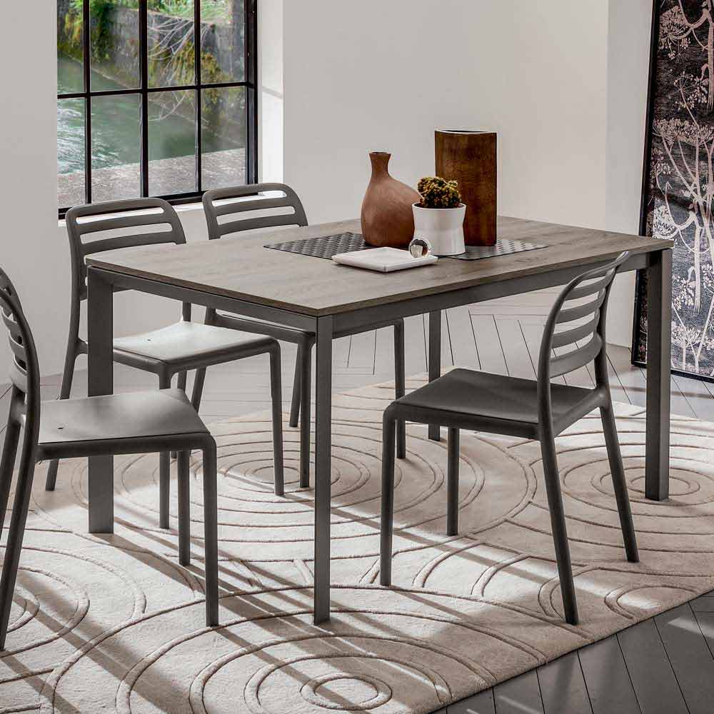 Jídelní stůl s melaminovou deskou a kovovou konstrukcí Made in Italy.
