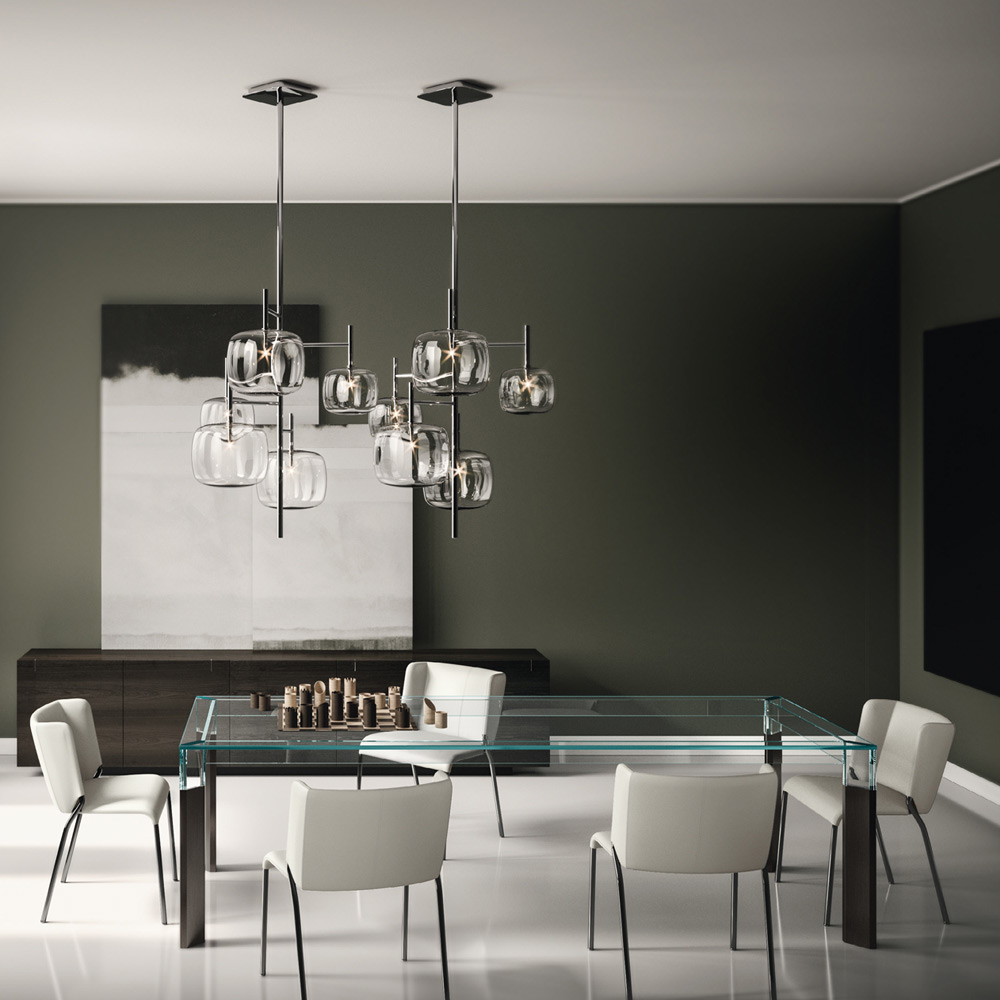 harmonie jednoduchých linií a tvarů, které vytvářejí dokonalý nápad zařídit jídelny nebo kuchyně současným stylem exkluzivním a rafinovaným způsobem, dobývat střed pozornosti a dělat okamžiky ve společnosti jedinečnými.