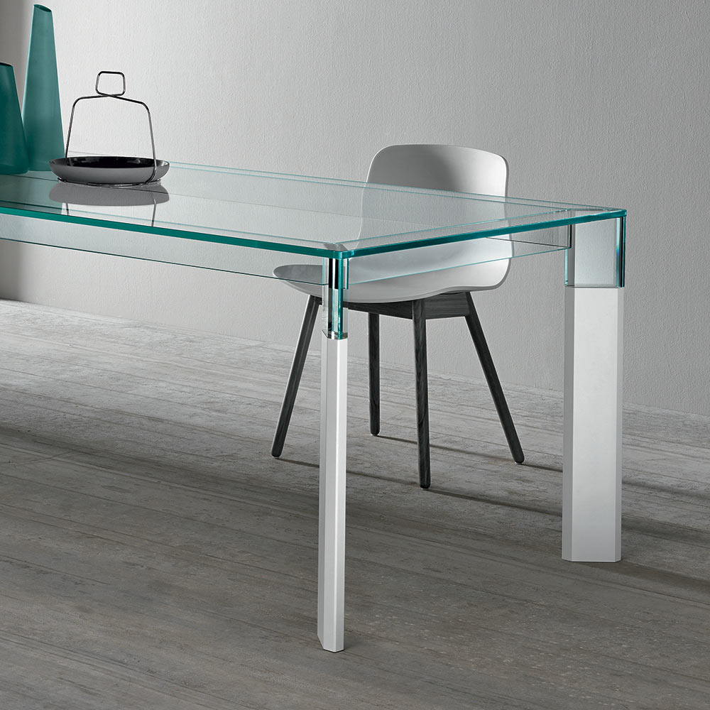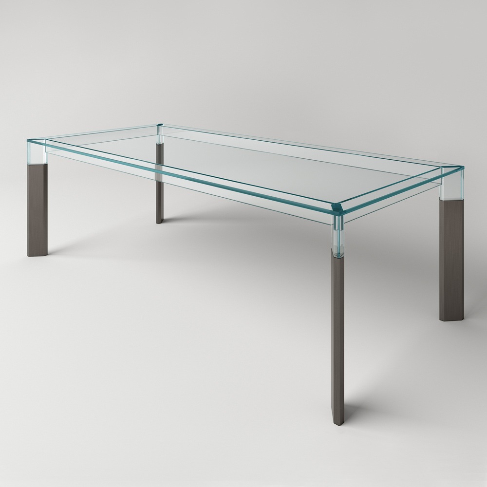 vyrobený v Itálii se skleněnou deskou a nohami ze