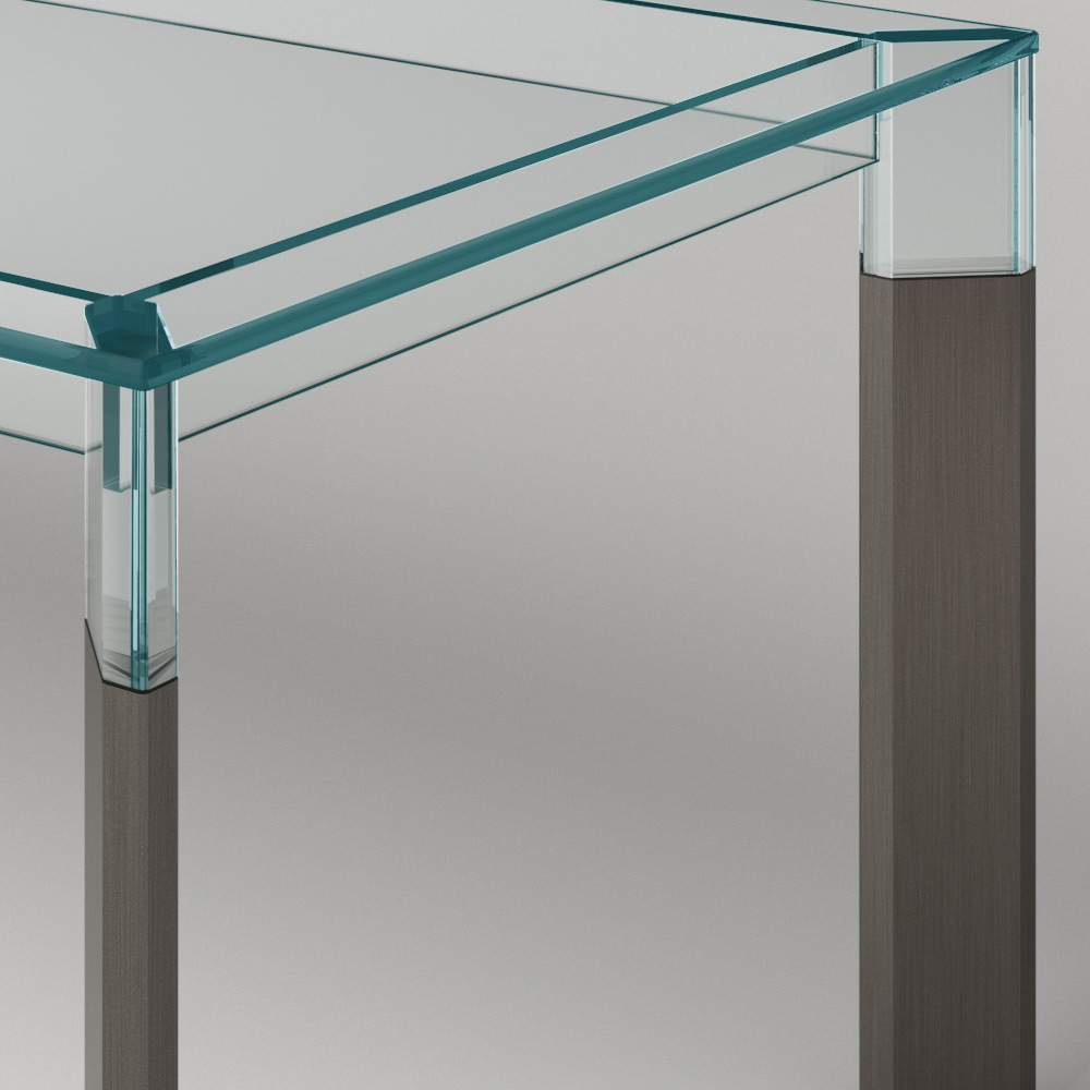 skla a masivního dřeva . Nadčasové řešení zařízení, vhodné pro různé styly, schopné podtrhnout dokonalé spojení elegance skla a majestátnosti dřeva, upřednostňující jeho