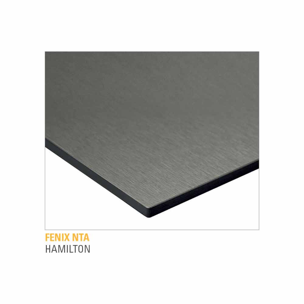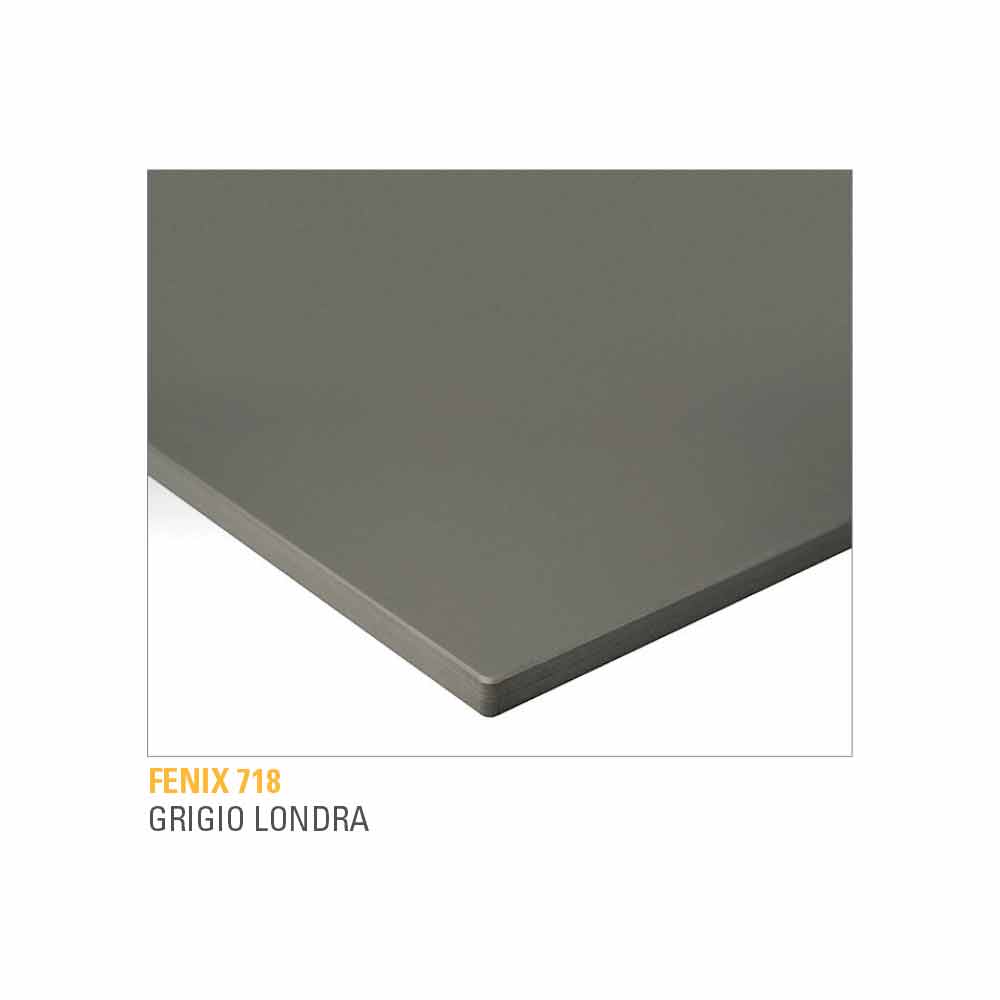 laminovanou deskou fenix (tloušťka 10 mm) vybavený podpěrou z mdf (tloušťka 22 mm) a nohami z černého eloxovaného