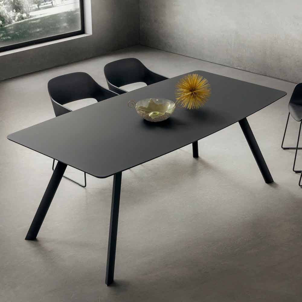 Jídelní stůl z vrstveného fenixu a broušeného hliníku Made in Italy.