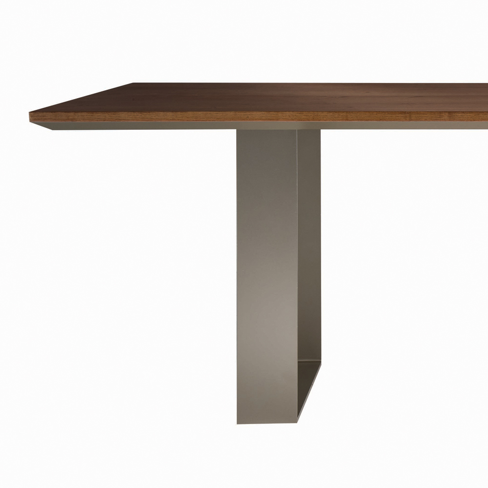 dynamický a elegantní vizuální efekt. Kombinace zvolených materiálů obohacuje tento jídelní stůl o