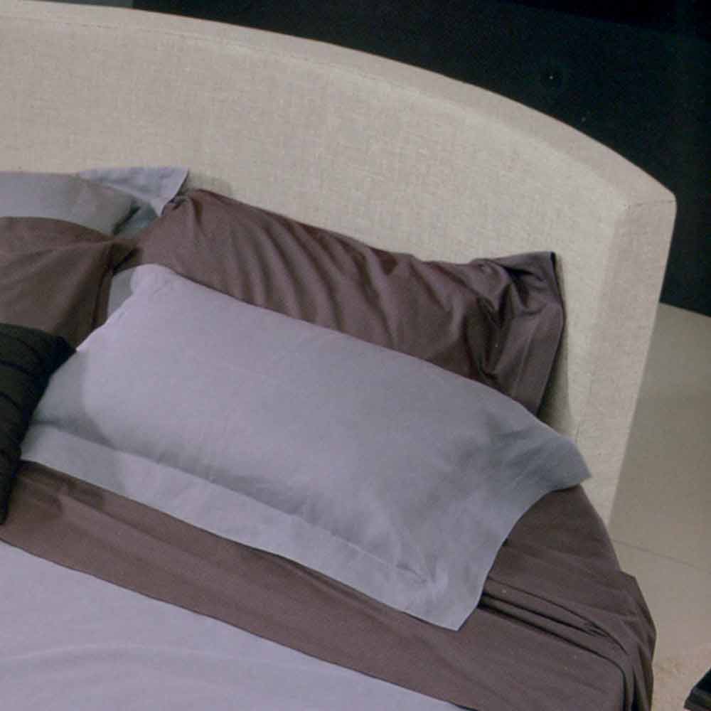 Kulatá manželská postel potažená látkou se zaobleným čelem Made in Italy.