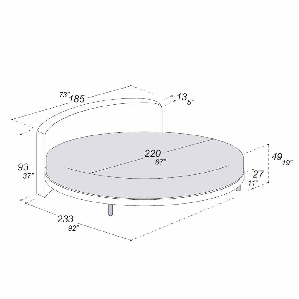 Kulatá manželská postel s jedinečným a vytříbeným designem vyznačujícím se neobvyklým tvarem a zaobleným čelem, které umožňuje její umístění do středu místnosti, ale také ke stěně.