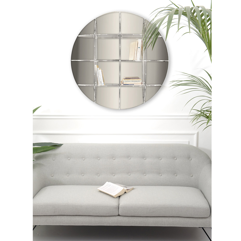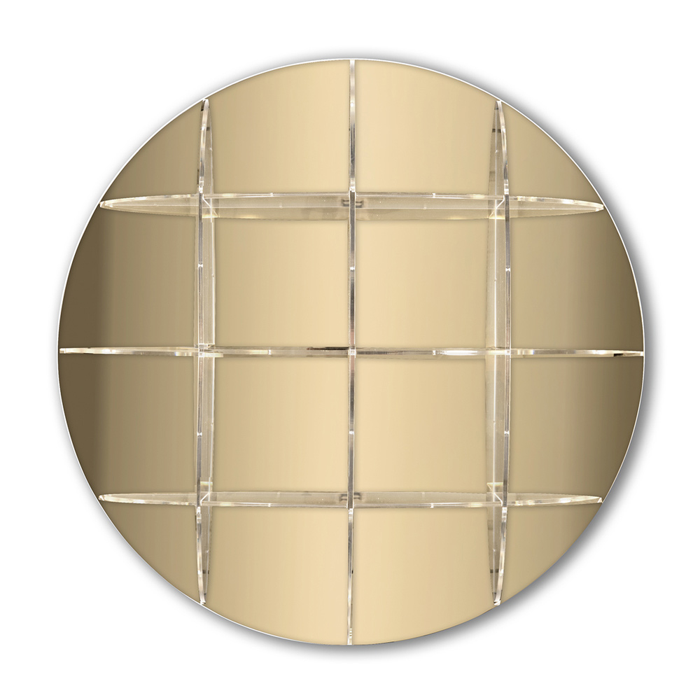 Kulatá nástěnná knihovna ve zlatém nebo stříbrném plexi Made in Italy.