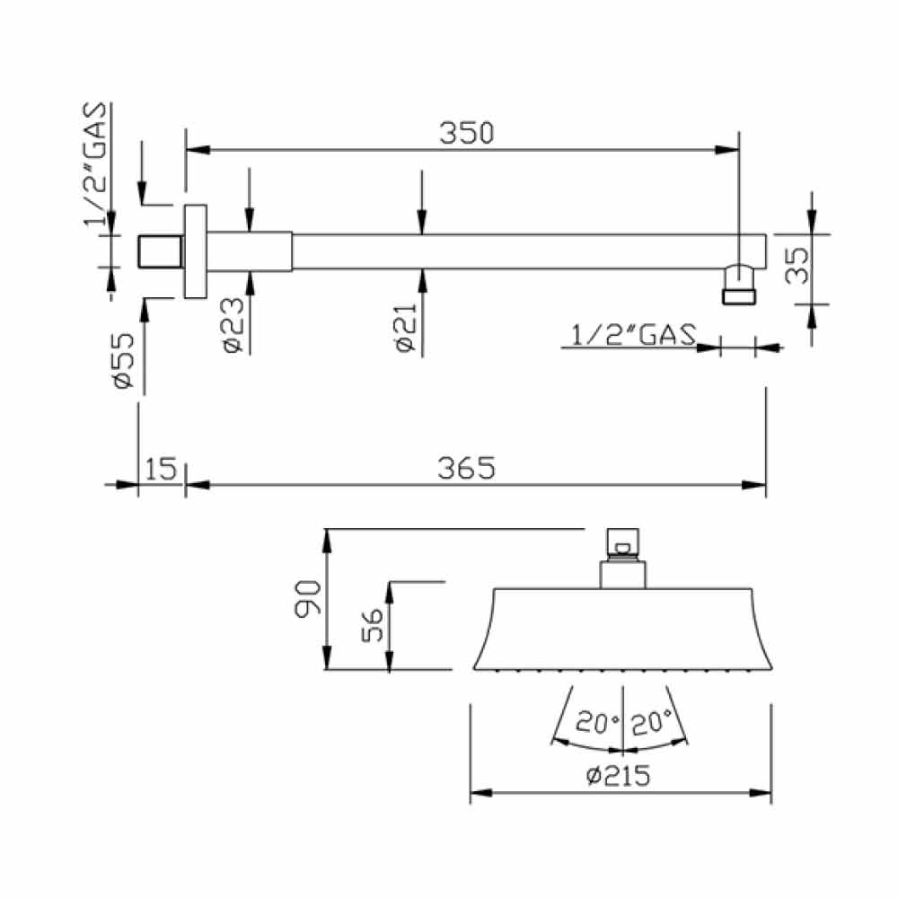 - kulatá nástěnná sprchová hlavice z mosazi proti vápenci;