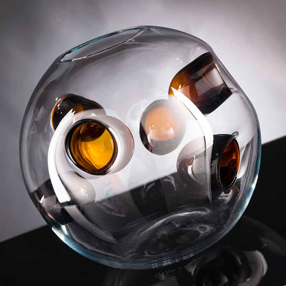 průhledného foukaného skla Murano s barevnými detaily vyrobenými