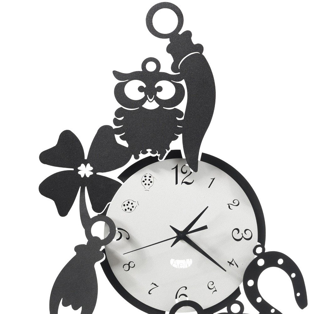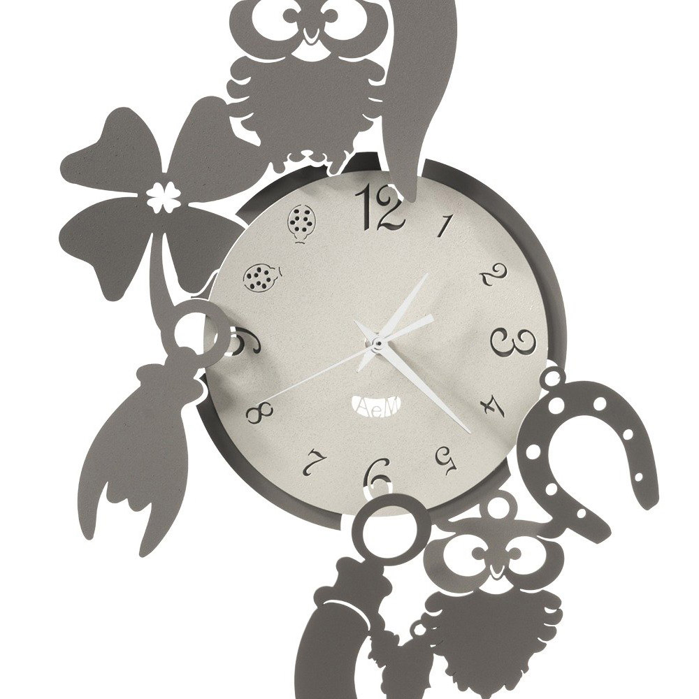 Kulaté designové železné nástěnné hodiny s talismany pro štěstí ve 3 povrchových úpravách vyrobené v Itálii.