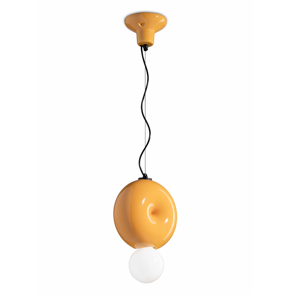 Tato závěsná lampa je skvělým příkladem toho, jak design může pozvednout obytný nebo pracovní prostor. Keramický základ je modelován s pečlivostí, která odráží mistrovství italských řemeslníků . Design je moderní, ale s nádechem nostalgie, takže je ideální pro ty, kteří milují kombinaci modernosti a retro tepla.