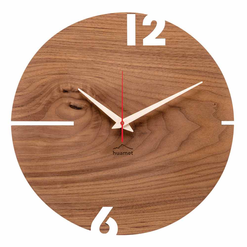 Moderní design kulaté nástěnné hodiny v dubu, borovice nebo ořechu; ručně vyráběné v Itálii.