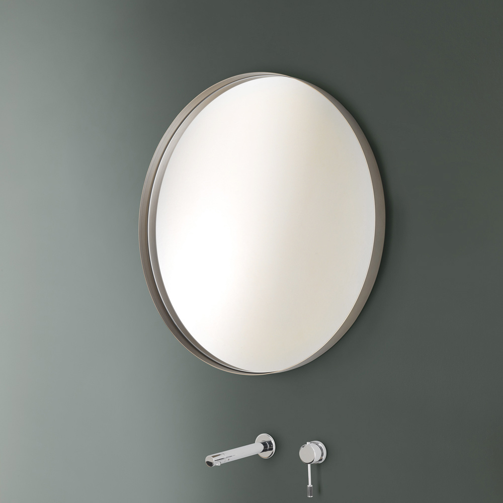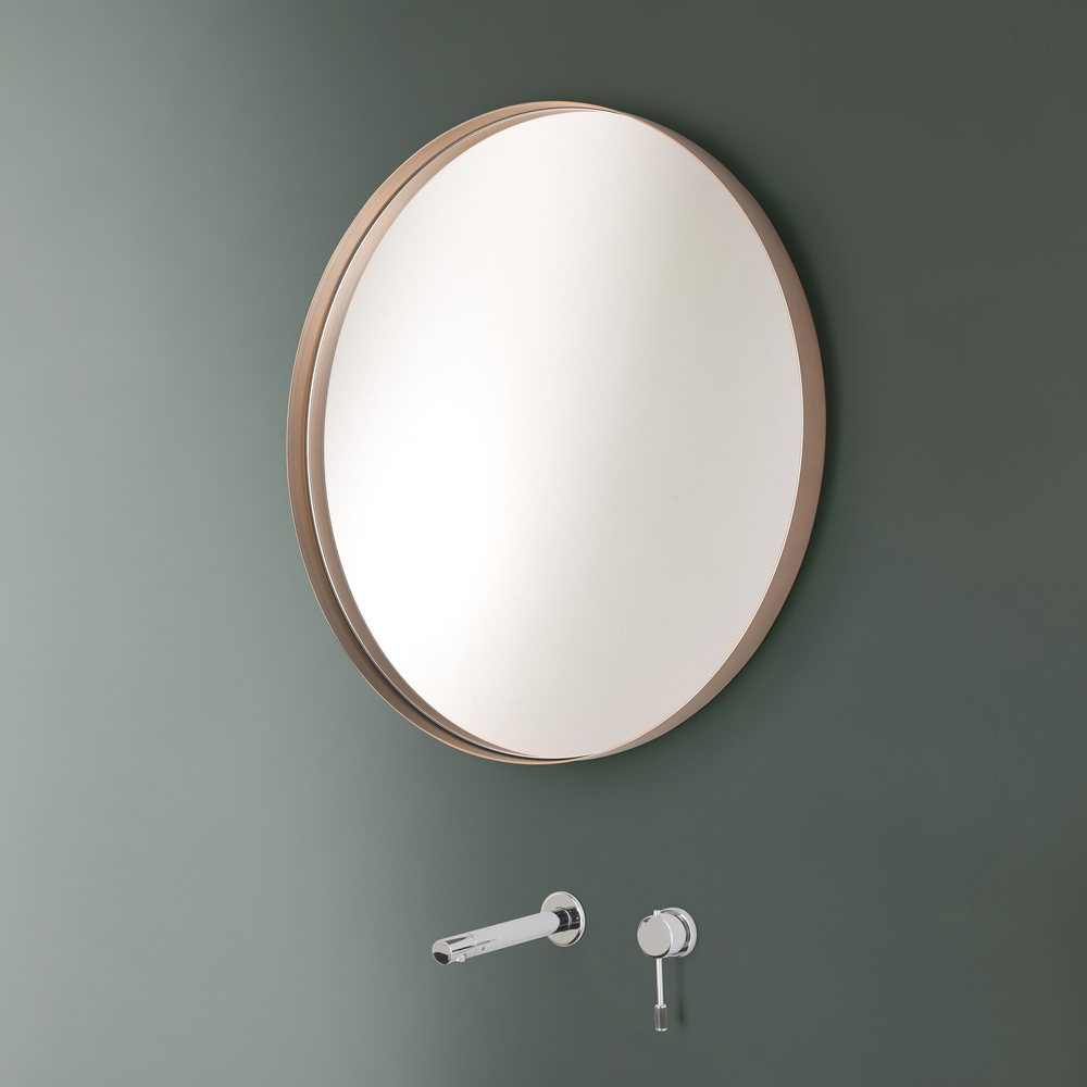 Kulaté nástěnné zrcadlo s kovovým rámem ve 4 povrchových úpravách, vyrobené v Itálii.