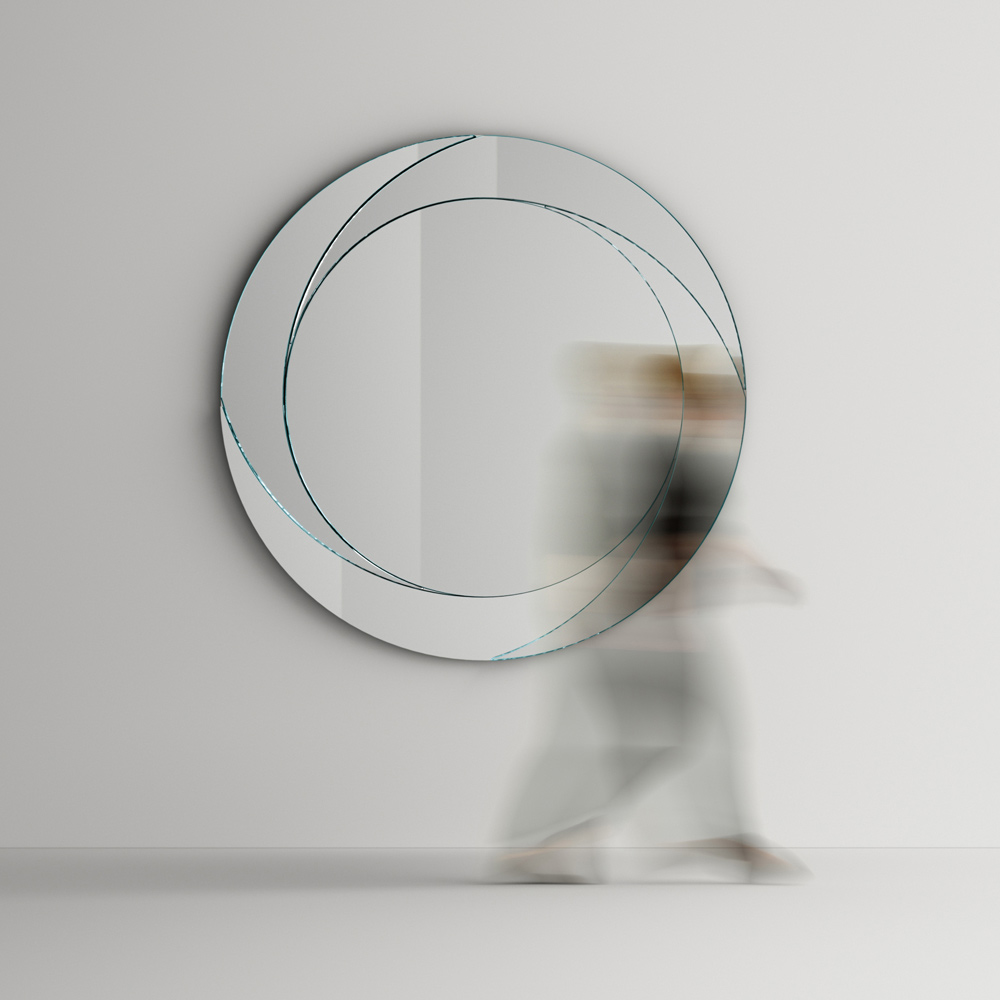 hru perspektiv, která dokáže oživit odraz obrazu na centrálním zrcadle. Svou jednoduchou, ale působivou estetikou je ideální pro dotvoření stěn jakéhokoli prostoru domu, od vstupu do obývacího pokoje až po ložnici, a zároveň pomáhá opticky zvětšit prostory pro větší a světlejší prostředí.