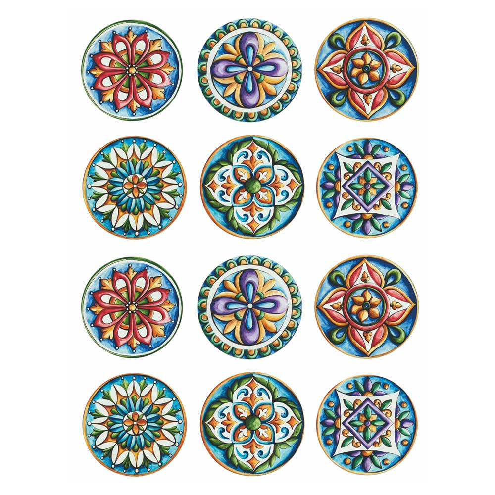 Kulaté barevné plastové prostírání s majolikovým designem, 12 kusů.