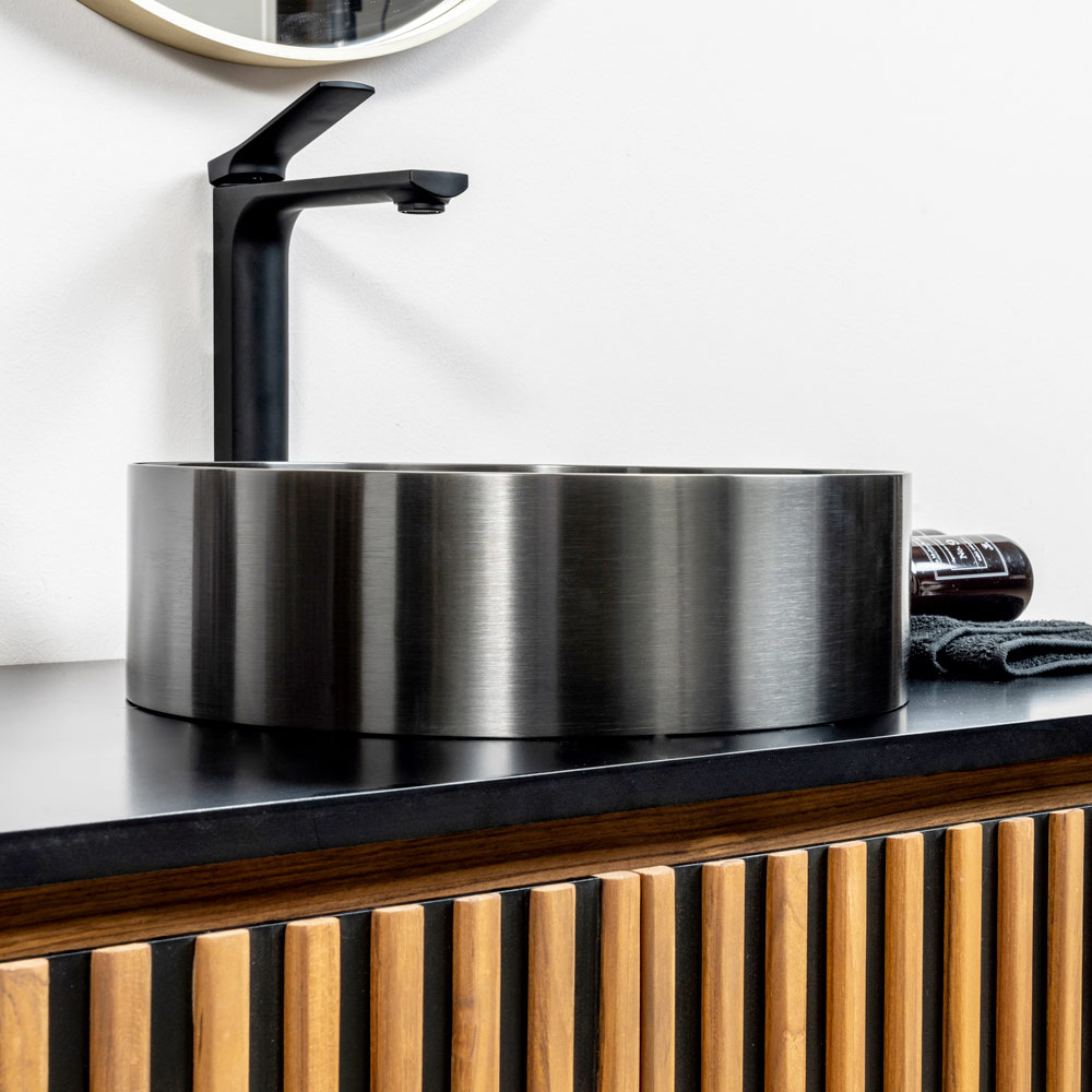 Kulatý dřez na desku z 3 mm nerezové oceli SUS 304 je klenotem designu a funkčnosti. Je vyrobena z jednoho plechu a nabízí čistý, moderní vzhled. Povrchová úprava PVD+Nano povlakem v kombinaci s pečlivým kartáčováním dodává předmětu atraktivní a téměř záhadný vzhled, zvyšuje lesk a odolnost vůči skvrnám a poškrábání. Design se vyznačuje vyváženými tvary a ideálními proporcemi, k dispozici ve třech povrchových úpravách , které se elegantně přizpůsobí jakémukoli prostředí. Kromě toho rafinované detaily, jako je zahrnutá krytka odtoku a naprostá absence viditelného svařování, povyšují tento dřez na skutečné mistrovské dílo řemesla a designu, což z něj činí výjimečný kousek do koupelen s luxusním a moderním dojmem.