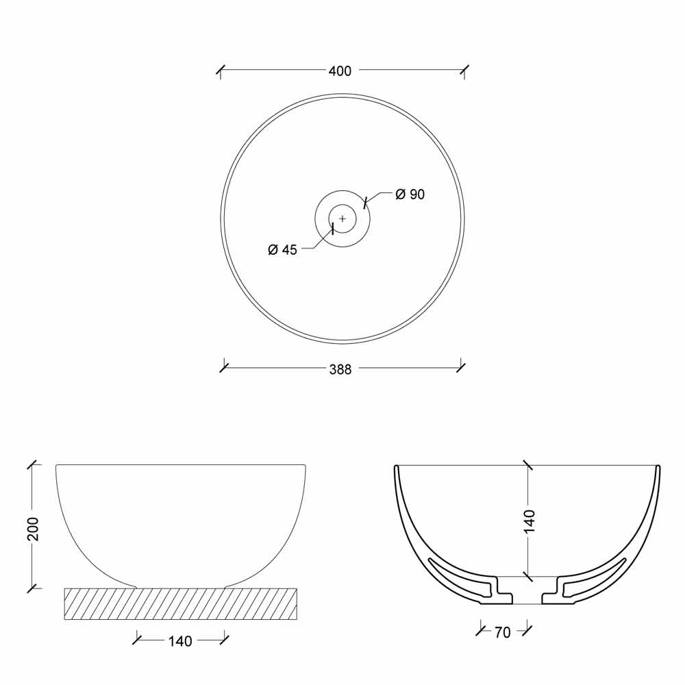 Moderní designové keramické umyvadlo na desku Star Round 40 cm, italské výroby