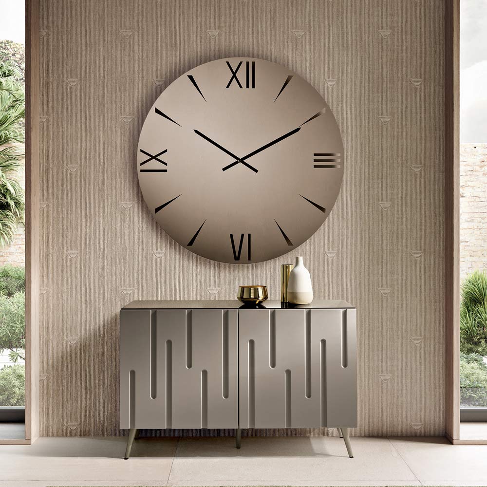 Elegantní nástěnné hodiny vyrobené v Itálii , ideální pro zkrášlení prostor, jako je obývací pokoj , vstupní hala nebo jídelna . Jejich moderní styl proměňuje funkci času v dekorativní prvek, který obohatí zeď o eleganci a osobitost.