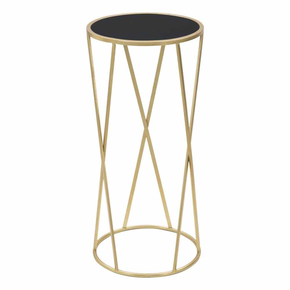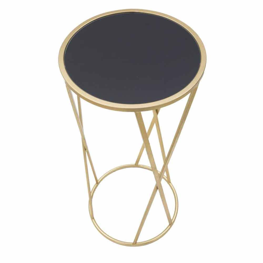 Moderní kulatý stolní držák telefonu Ø 35 cm ze železa se skleněnou deskou.