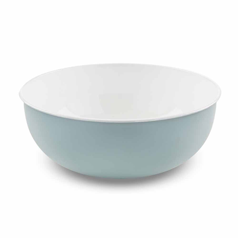 Kovové umyvadlo na desku s miskou. Uvnitř glazura lesklá bílá, zvenčí matná barva s drsným efektem. „Zatočený“ horní okraj dodává umyvadlu větší pevnost a snadné čištění.